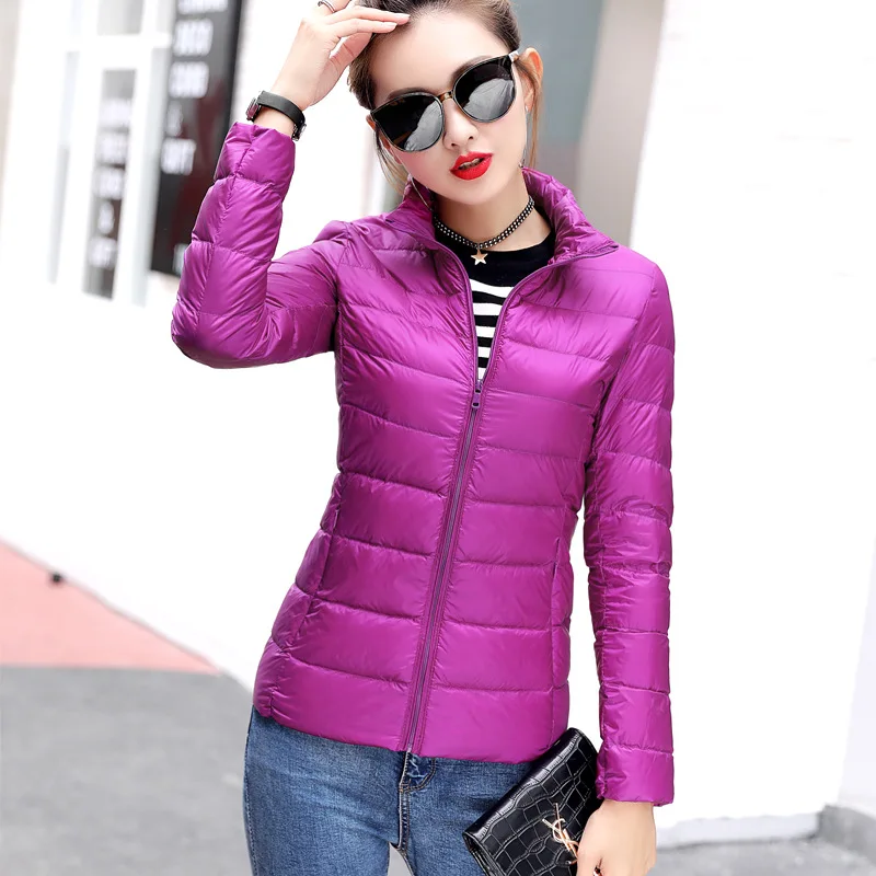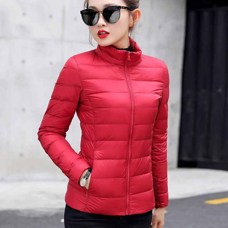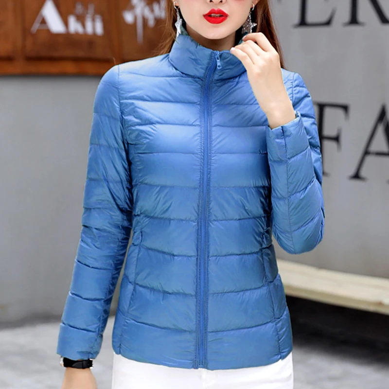 Warm Duck Down Women's Casual Jacket Stand Collar Pocket Ladies Slim Jacket Duck Down Down Coat Women's Autumn and Winter Coat