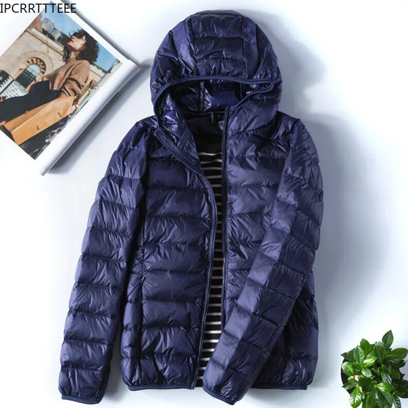 Autumn Winter Hooded Jacket Lady Ultra Light Women Down Jacket Slim Warm 90% White Duck Down Coat Female Portable Outerwear