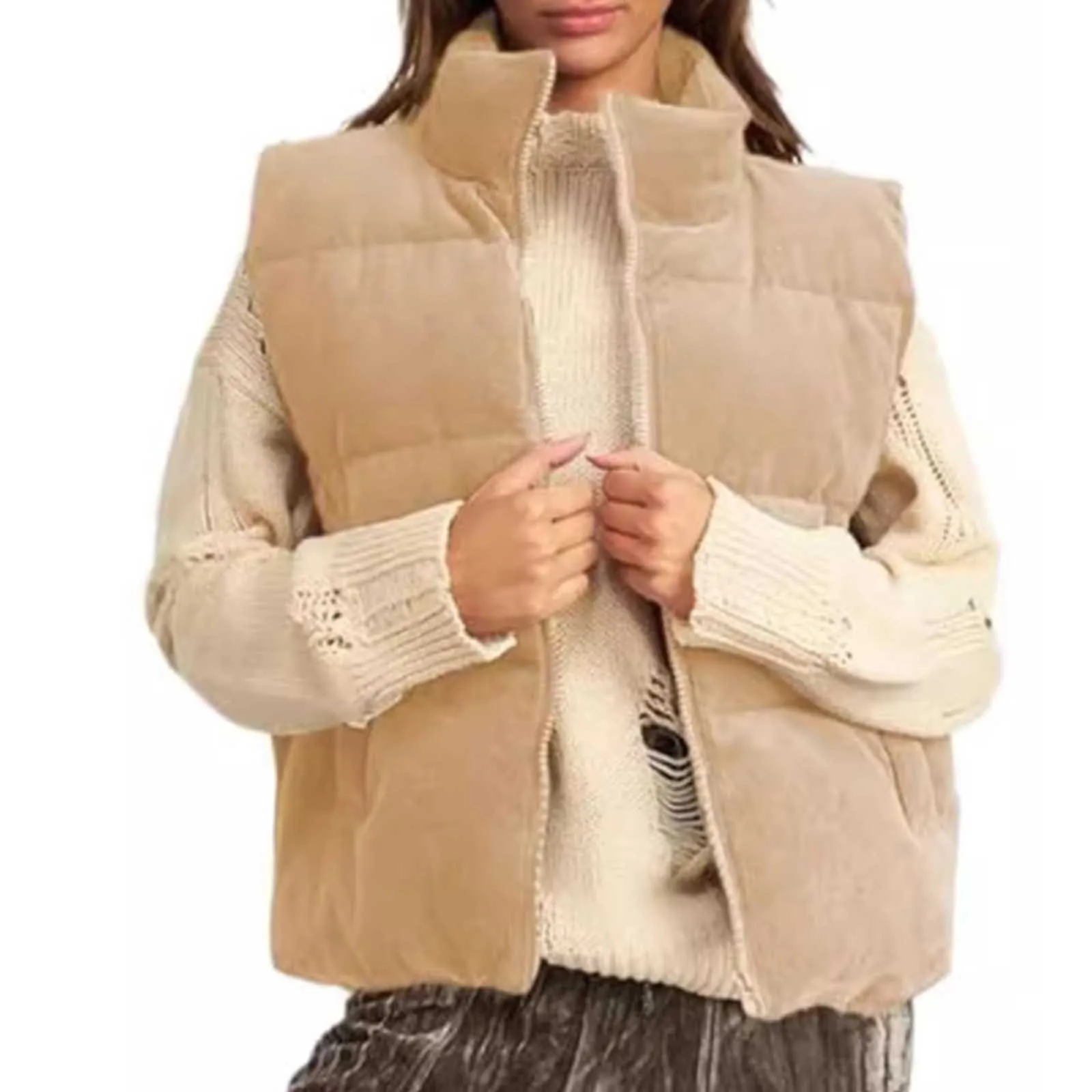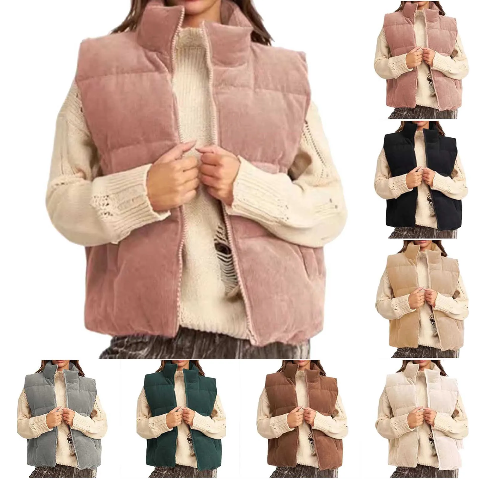 Women's Corduroy Vest Outwear Autumn Winter Vest Thick Section Keep Warm Coat Korean Style Solid Sleeveless Waistcoat Clothing