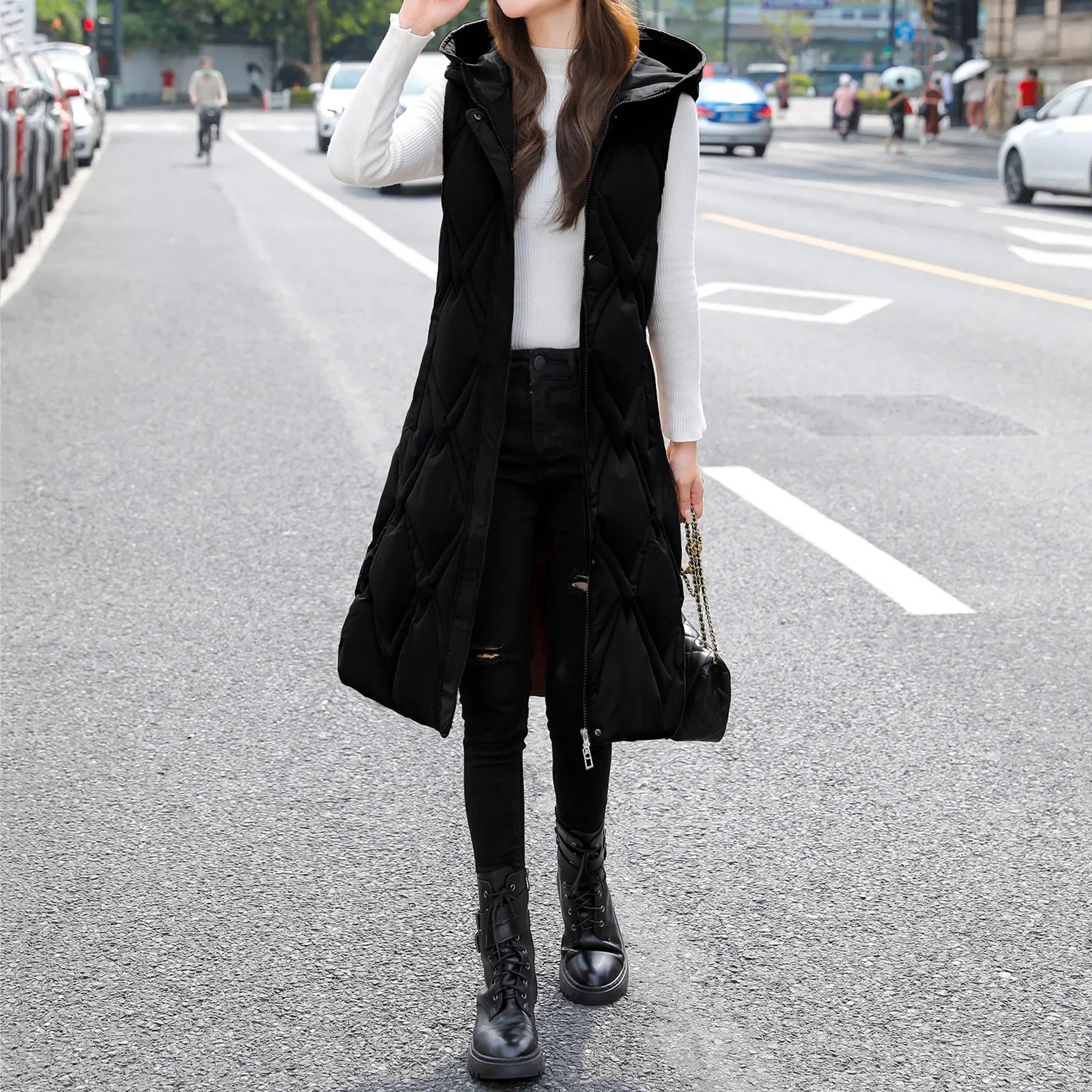 Women'S Down Vest With Hood Sleeveless Jacket With Pockets Winter Down Coat Long Sleeve Warm Jacket Vest Winter Outdoor Coat