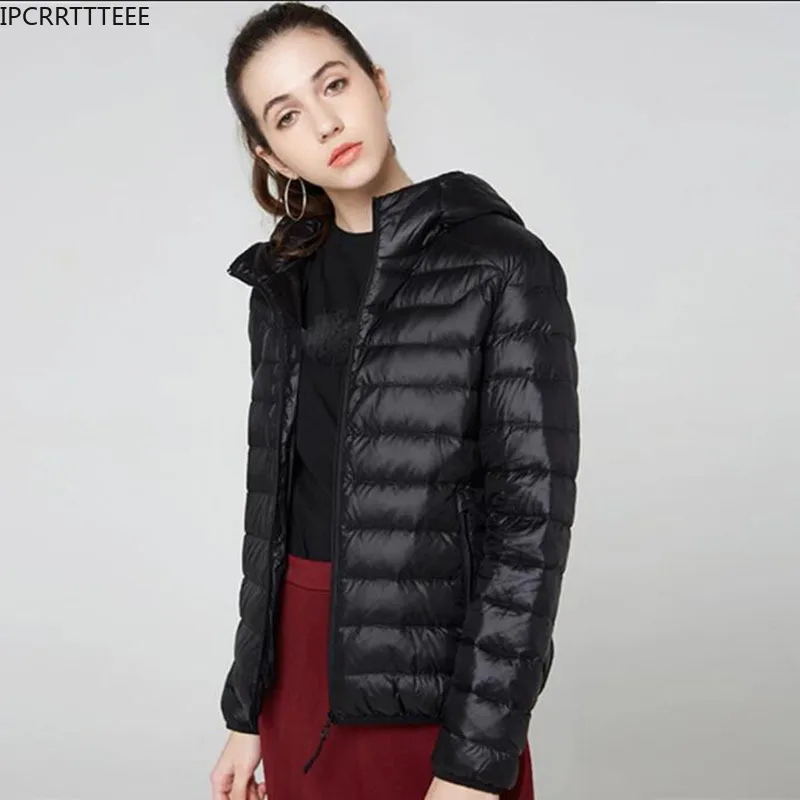 Autumn Winter Women Ultralight Thin Down Jacket White Duck Down Hooded Jackets Long Sleeve Down Coat Female Portable Outwear