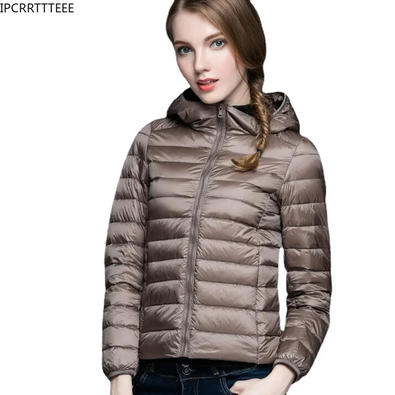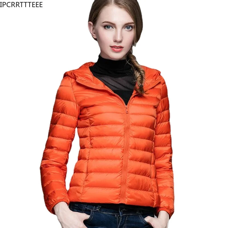 Women Autumn Winter Down Jacket Hooded 90% White Duck Down Plus Size Ultra Light Down Coat Solid Color Portable Outerwear