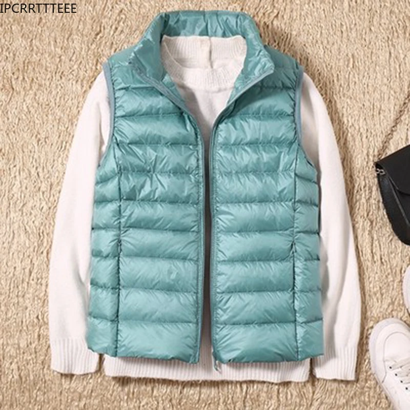 New Autumn Winter Ultra Light Down Waistcoat Women Vest Jacket White Duck Down Vest Slim Sleeveless Coat