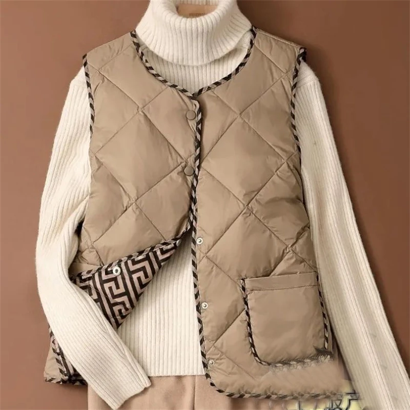 Autumn Winter Sleeveless Warm Down Cotton Padded Coats Simple Vintage Outerwear Waistcoat Casual O Neck Loose Button Vest Jacket