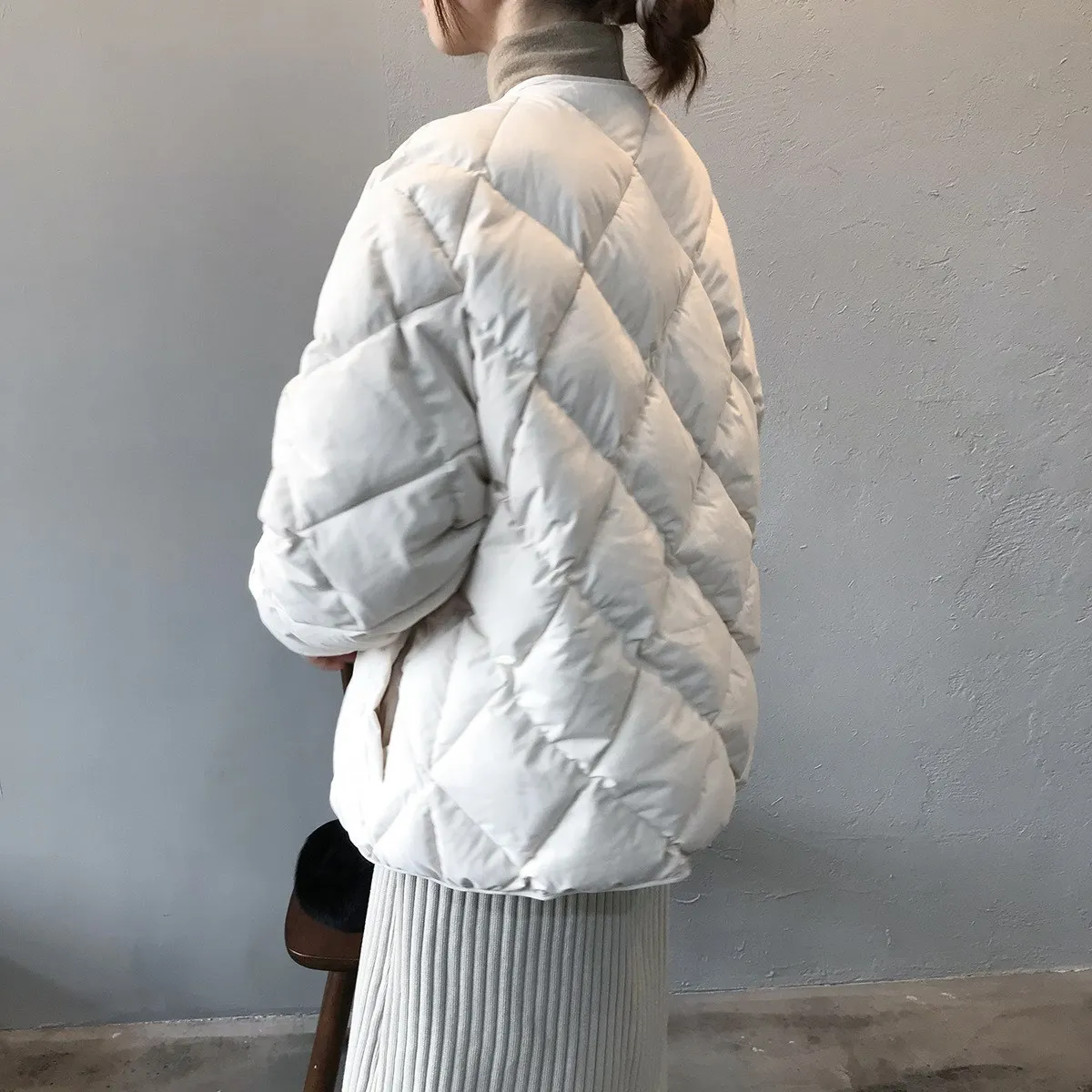 Collarless Diamond Check Down Jacket Women 2023 Autumn and Winter New Korean Version Loose Light Port Wind Short Coat Bread Suit