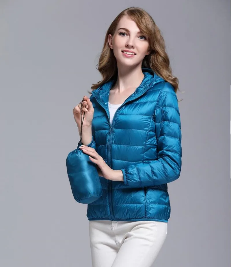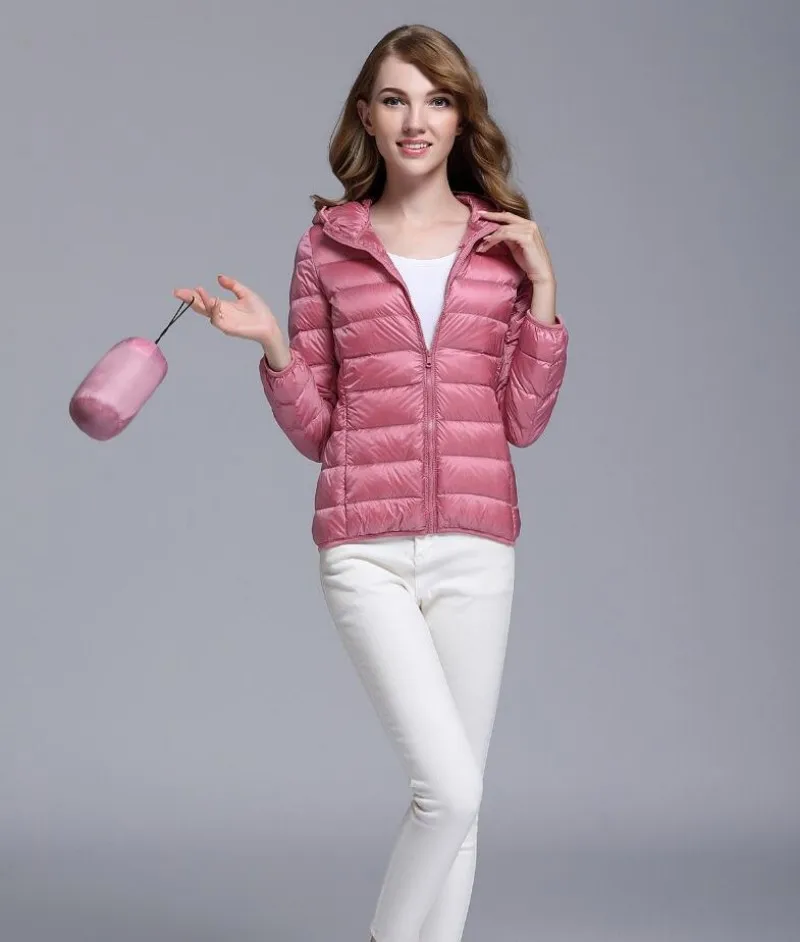 2023 Winter Women Hooded White Duck Down Jacket Female Ultra Light Down Jackets Slim Long Sleeve Parkas Candy Color Fashio