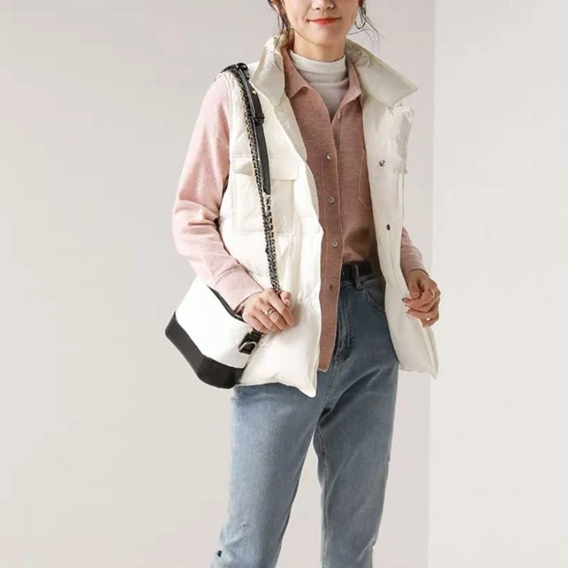 2024 New Ultra Light Down Vest Women Short Vest Windproof Lightweight Warm Waistcoat Female White Duck Down Down Coat Sleeveless