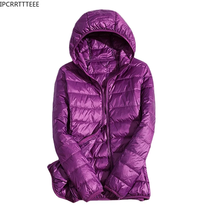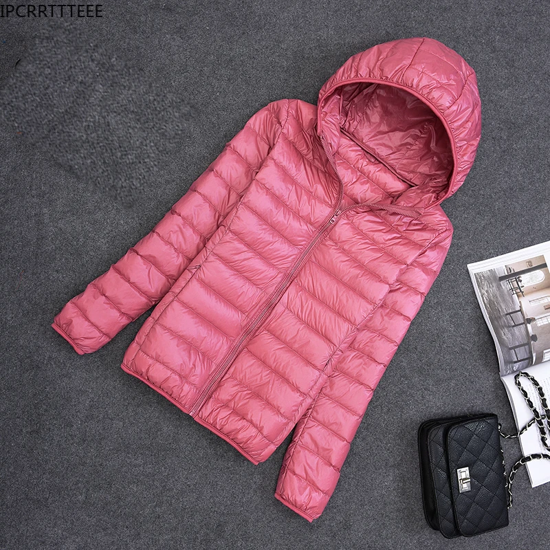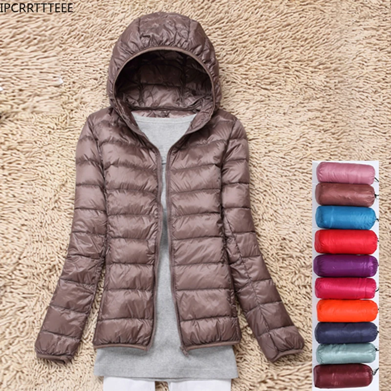 Autumn Women Slim Solid Long Sleeve Hooded Winter Down Coat White Duck Down Jacket Ultra Light Down Jackets