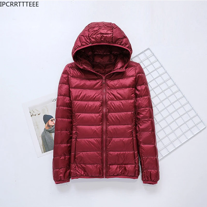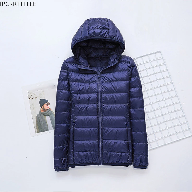 Autumn Winter White Duck Down Jacket Women Solid Thin Short Stand Collar Hooded Fashion Slim Large Size Down Coat