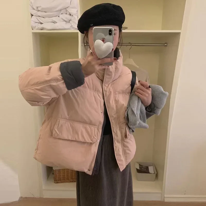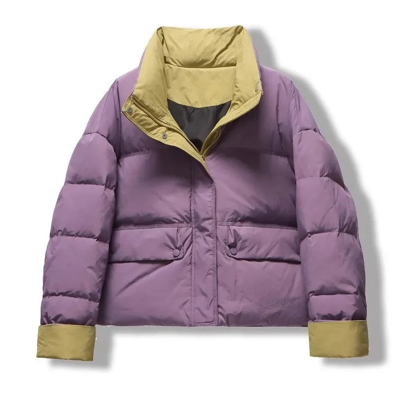 2024 women's color matching stand-up collar down jacket, warm down jacket when the new models are loose in winter
