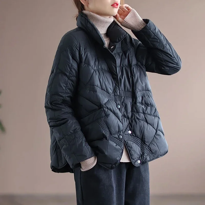 Loose Short Jacket Women's New Autumn/Winter Lightweight Single Breasted Fashion Casual Female White Duck Down Jackets