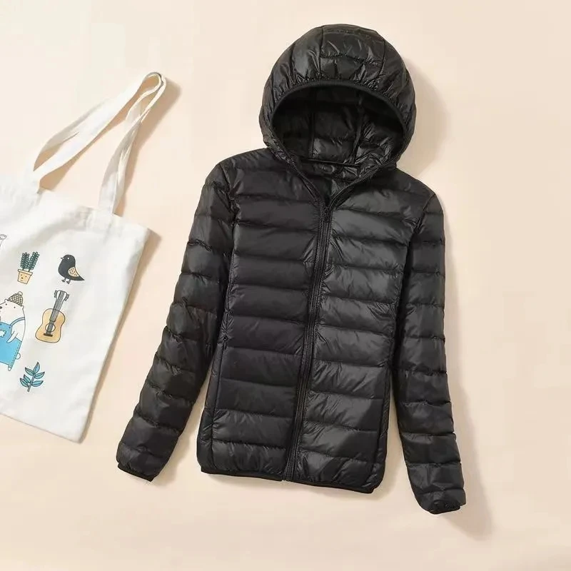 2023 New Women Thin Down Jacket Portable Outwear White Duck Down Ultralight Jackets Autumn Winter Warm Coats Short Hooded Coat