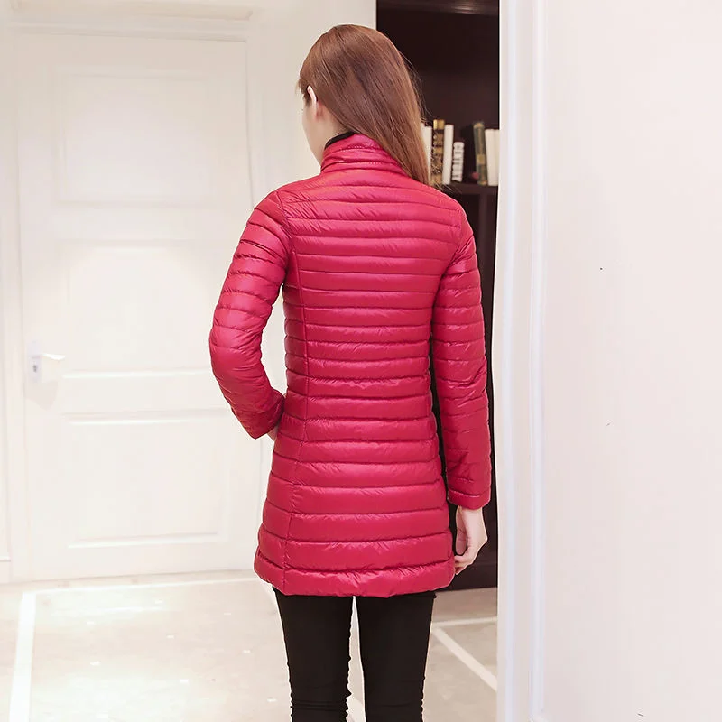 Winter 4XL Womens Down Jackets Ultra Light Duck Down Coat Long Puffer Jacket Slim Black Parkas Woman Parkas