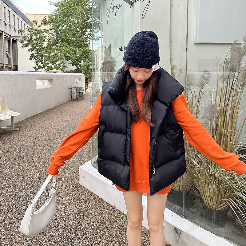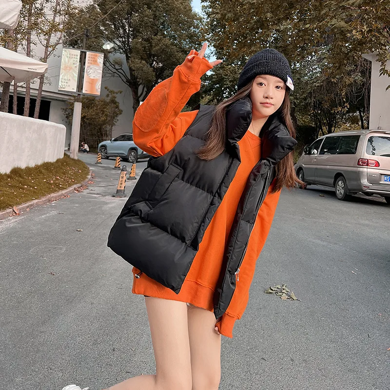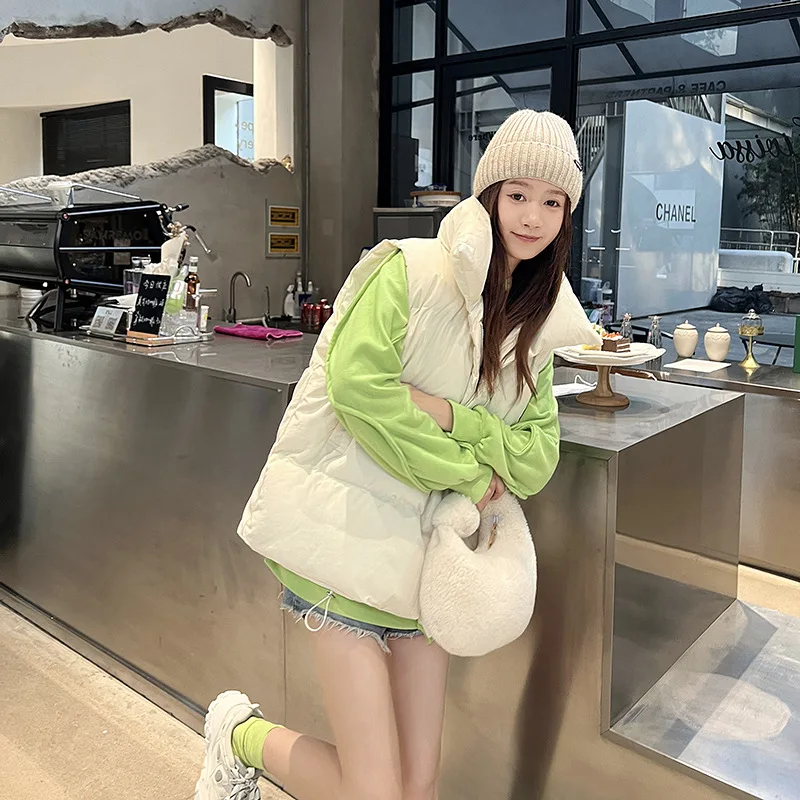 Women's New Vest Jacket Fall Winter Clothes Cropped Hooded Fashionable Shoulders Are Warm Fluffy Loose Cotton Vest Jacket