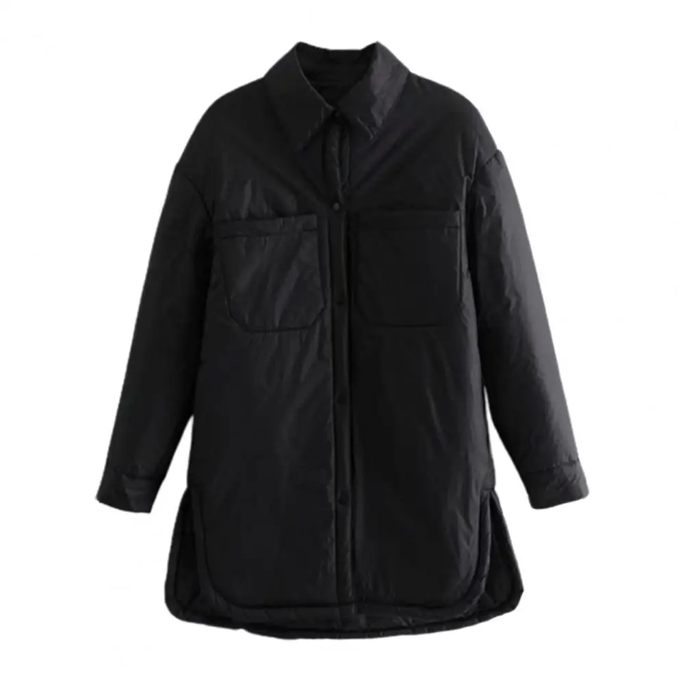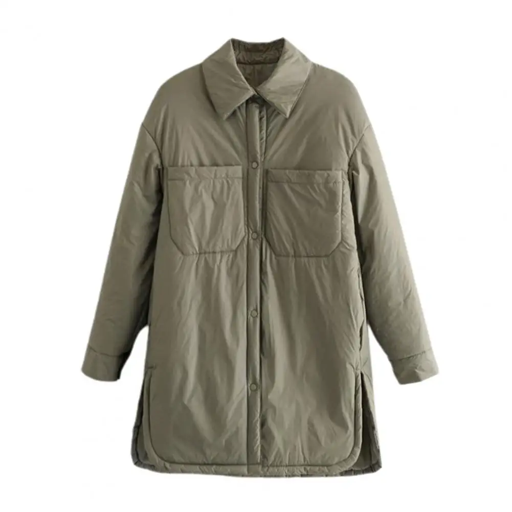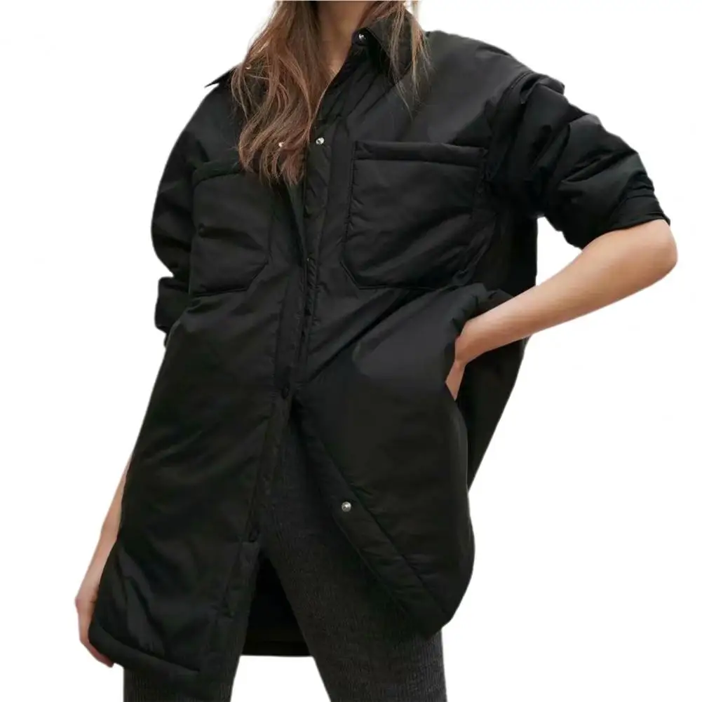 Coat Turn-Down Collar Women Buttons Closure Big Pockets Shirt Jacket Outerwear chaquetas para mujeres