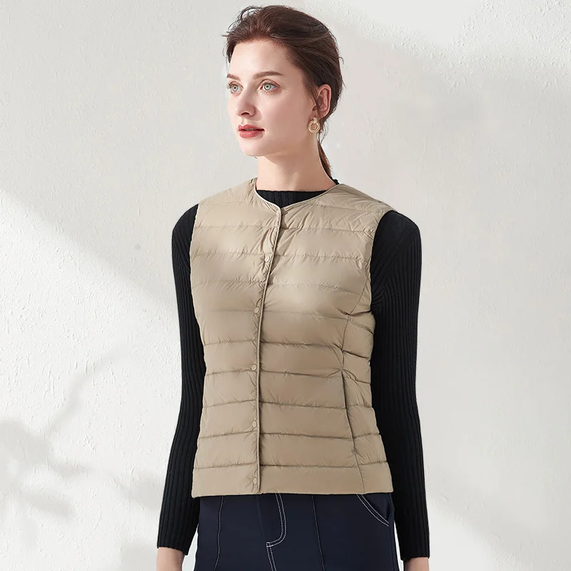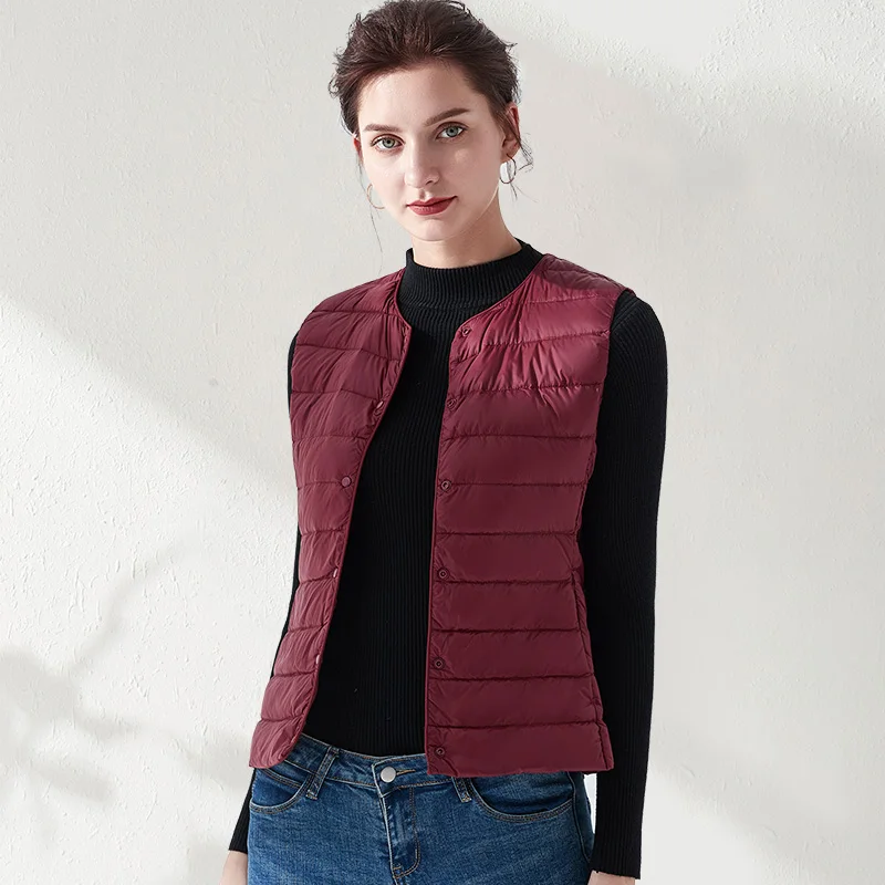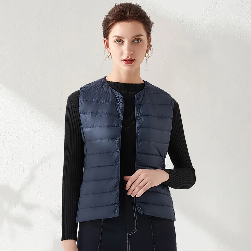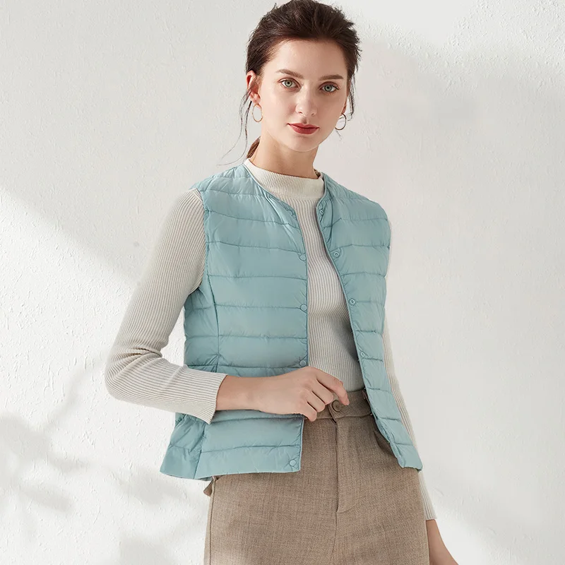 Hot Selling 90% Ultra Light White Duck Down Women Vest Button O-neck Thin Coat Women Sleeveless Jacket