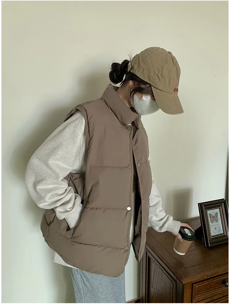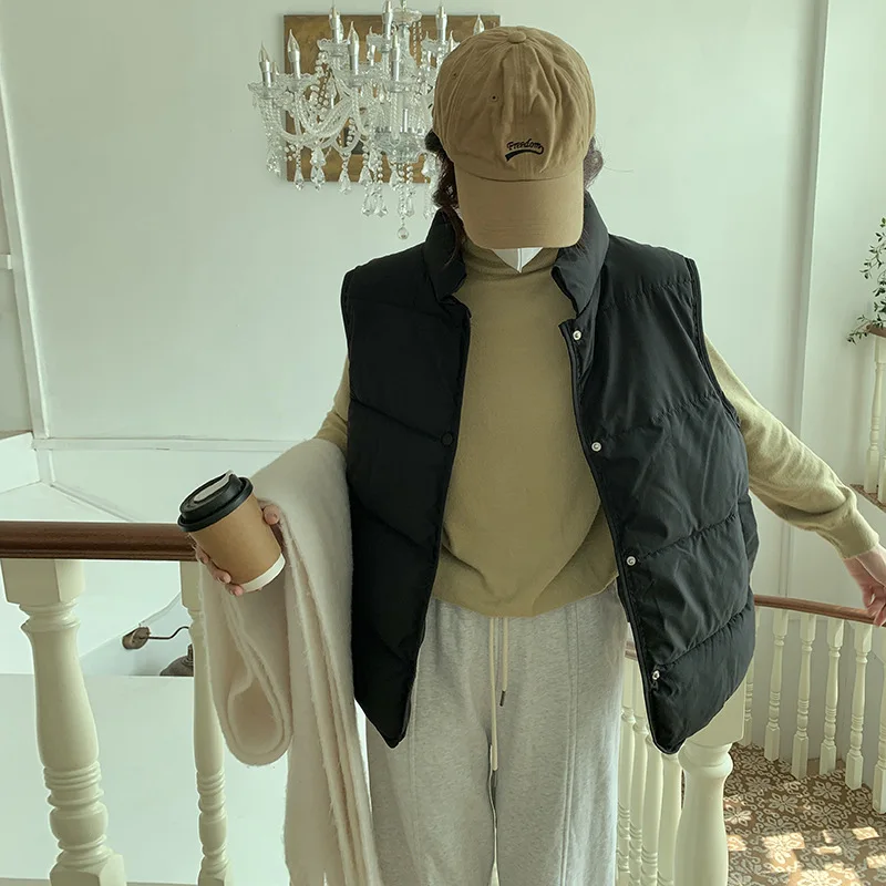 Women's Down Cotton Vest Short Stand-Up Collar Autumn/Winter Solid Color Loose-Fitting Padded Clothing Vest Light Vest Jacket