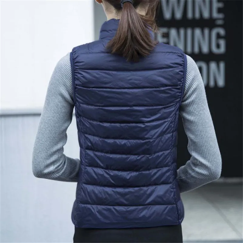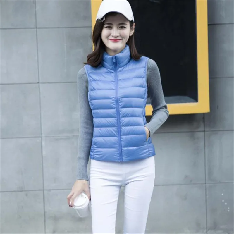 2023 Autumn Winter Women Sleeveless Jacket Waistcoat Ultra Light White Duck Down Vest Coat Female Slim Warm Vest Outwear AB1060