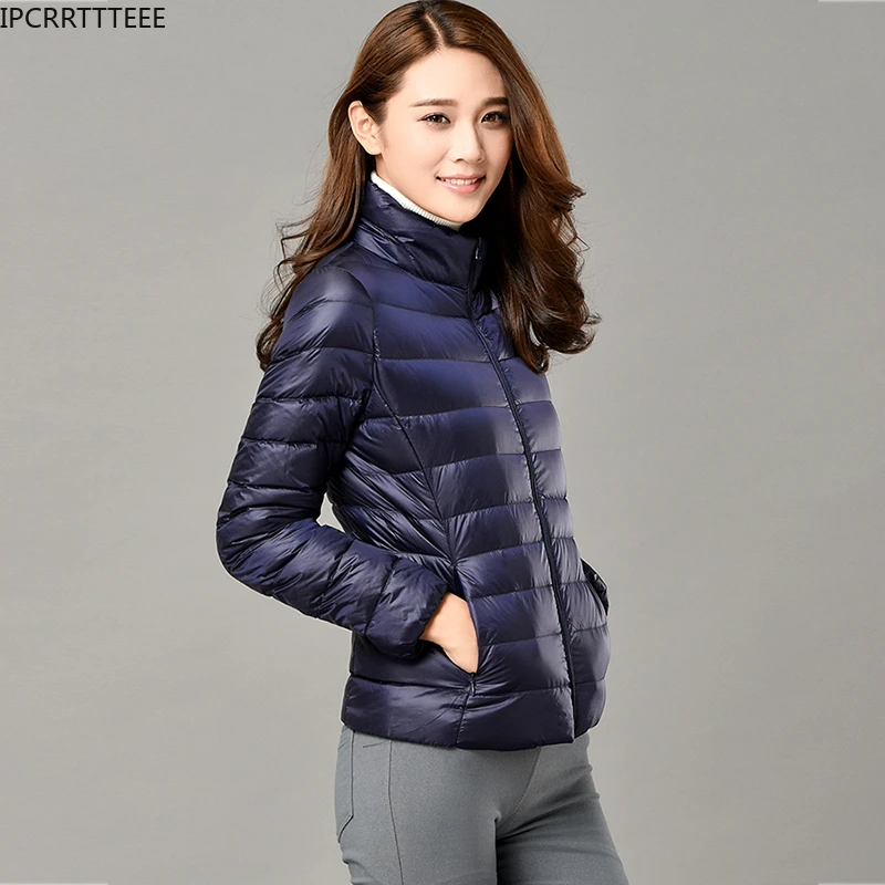 Women Autumn Winter Coat Ultralight Duck Down Thin Jacket Hooded Puffer Jackets Windproof Female Portable Down Coat