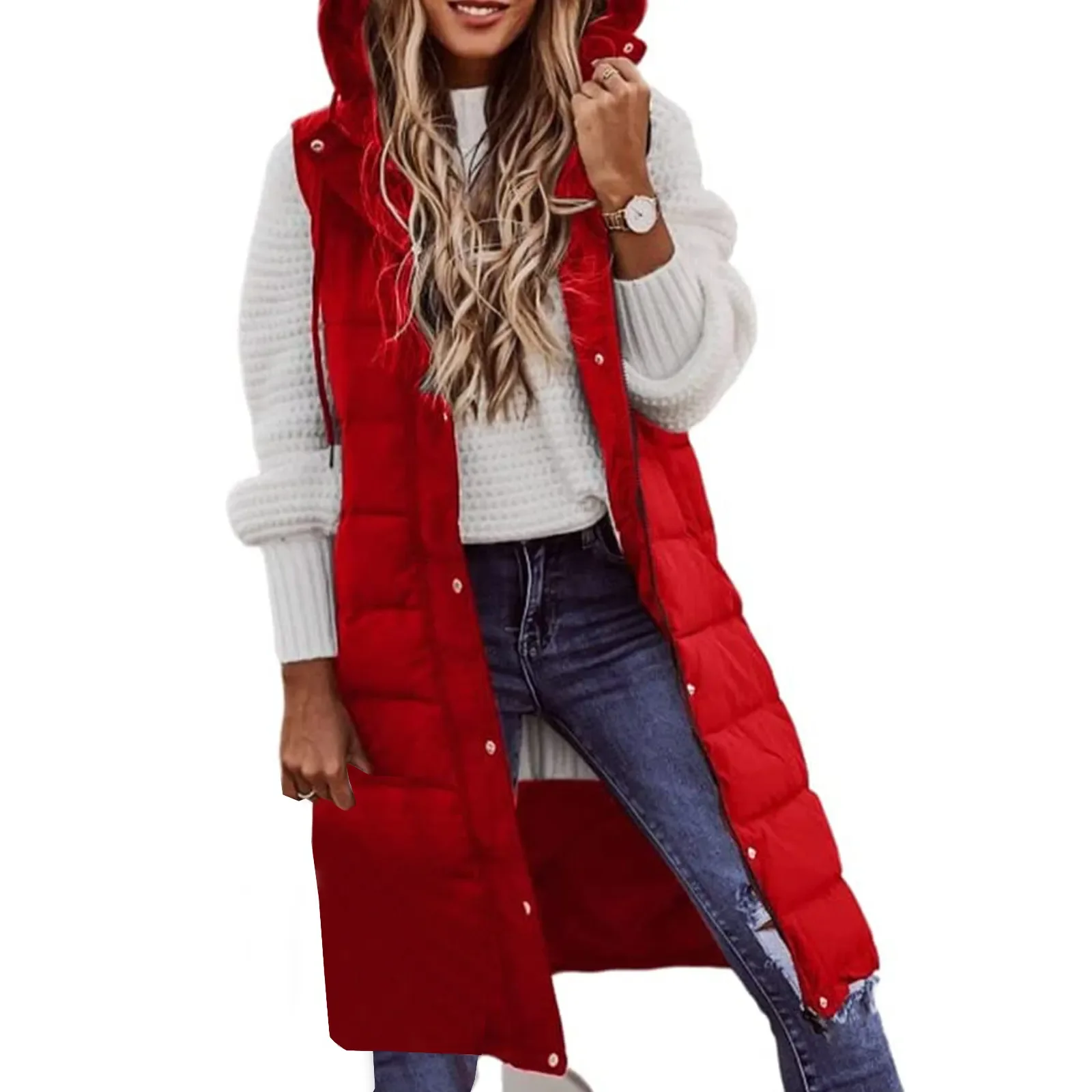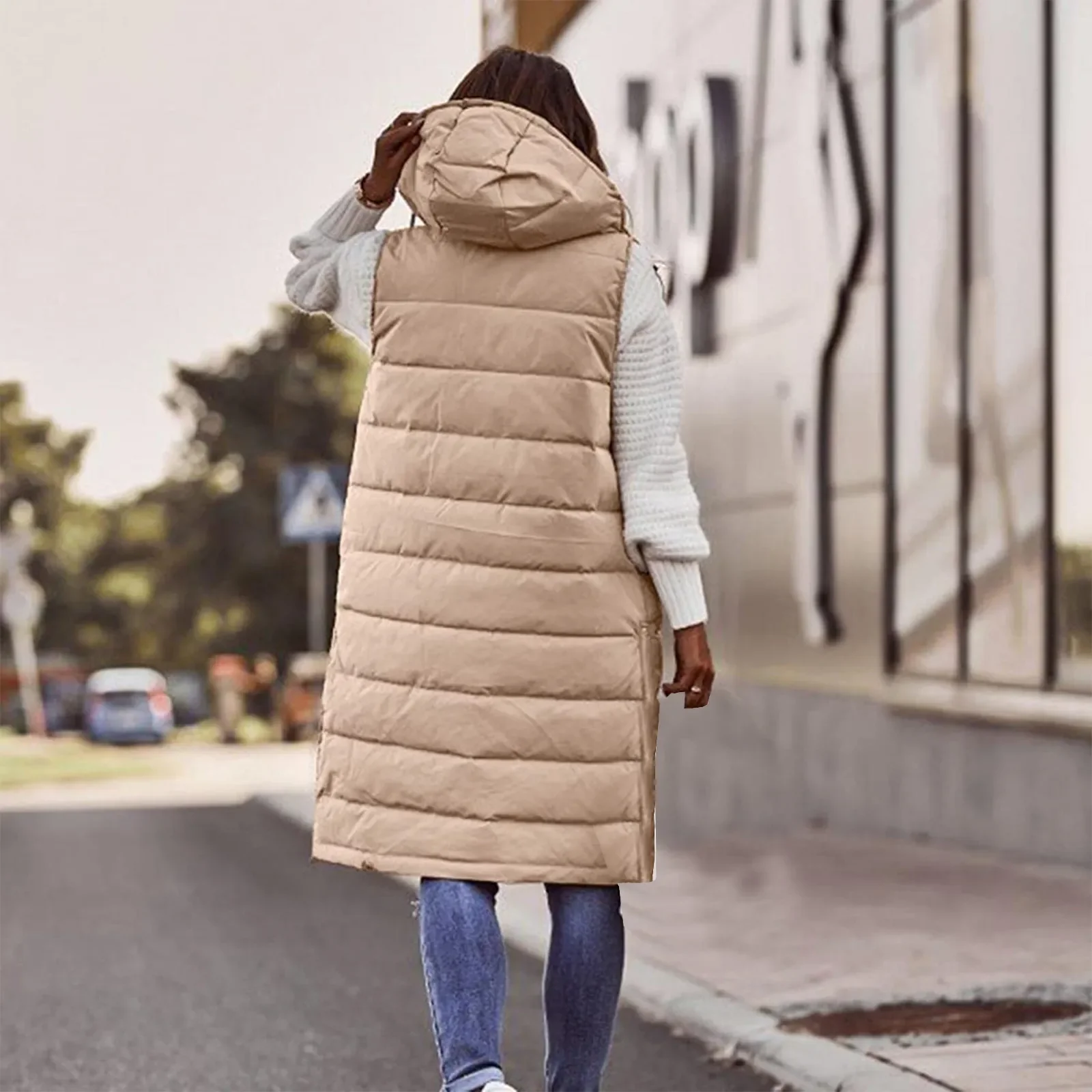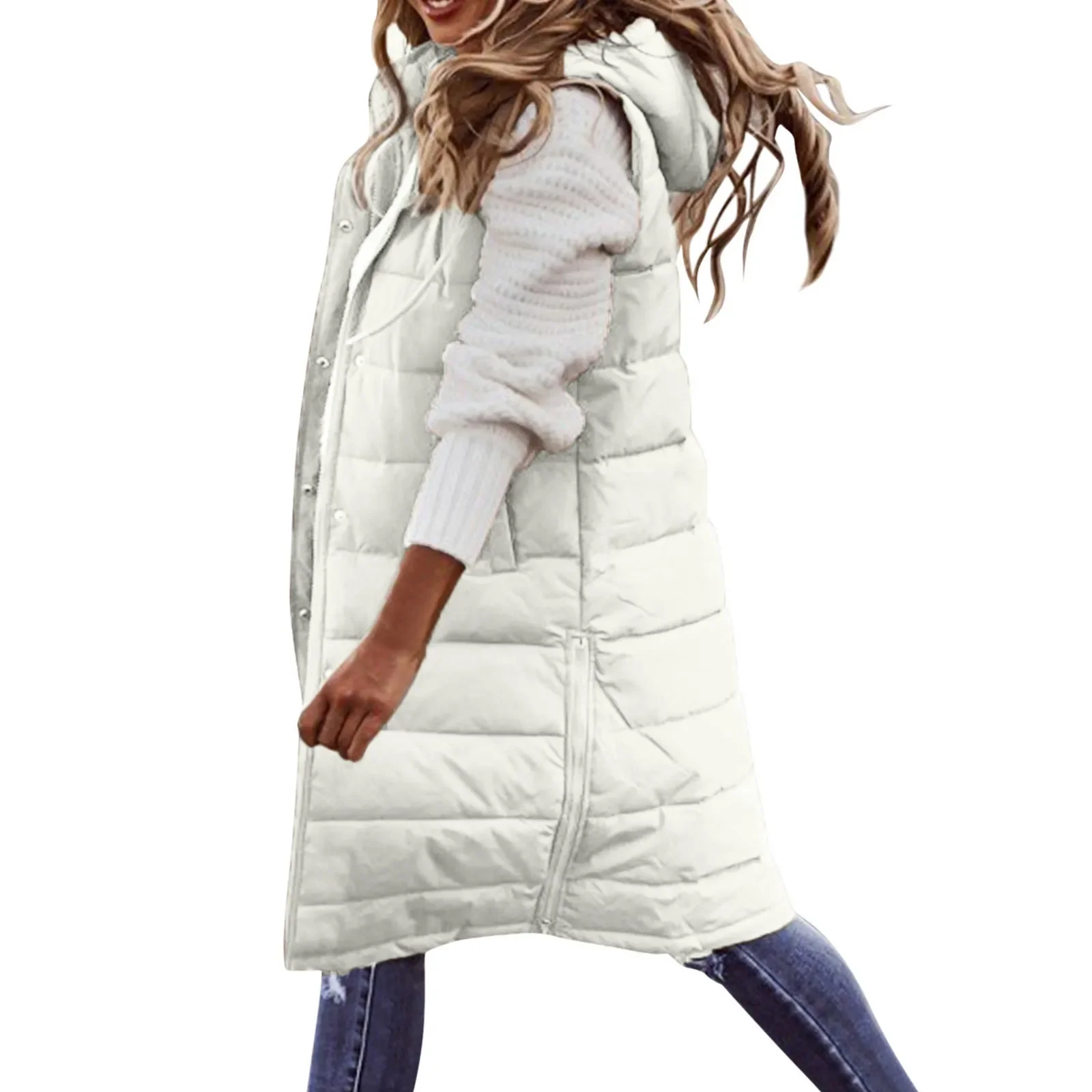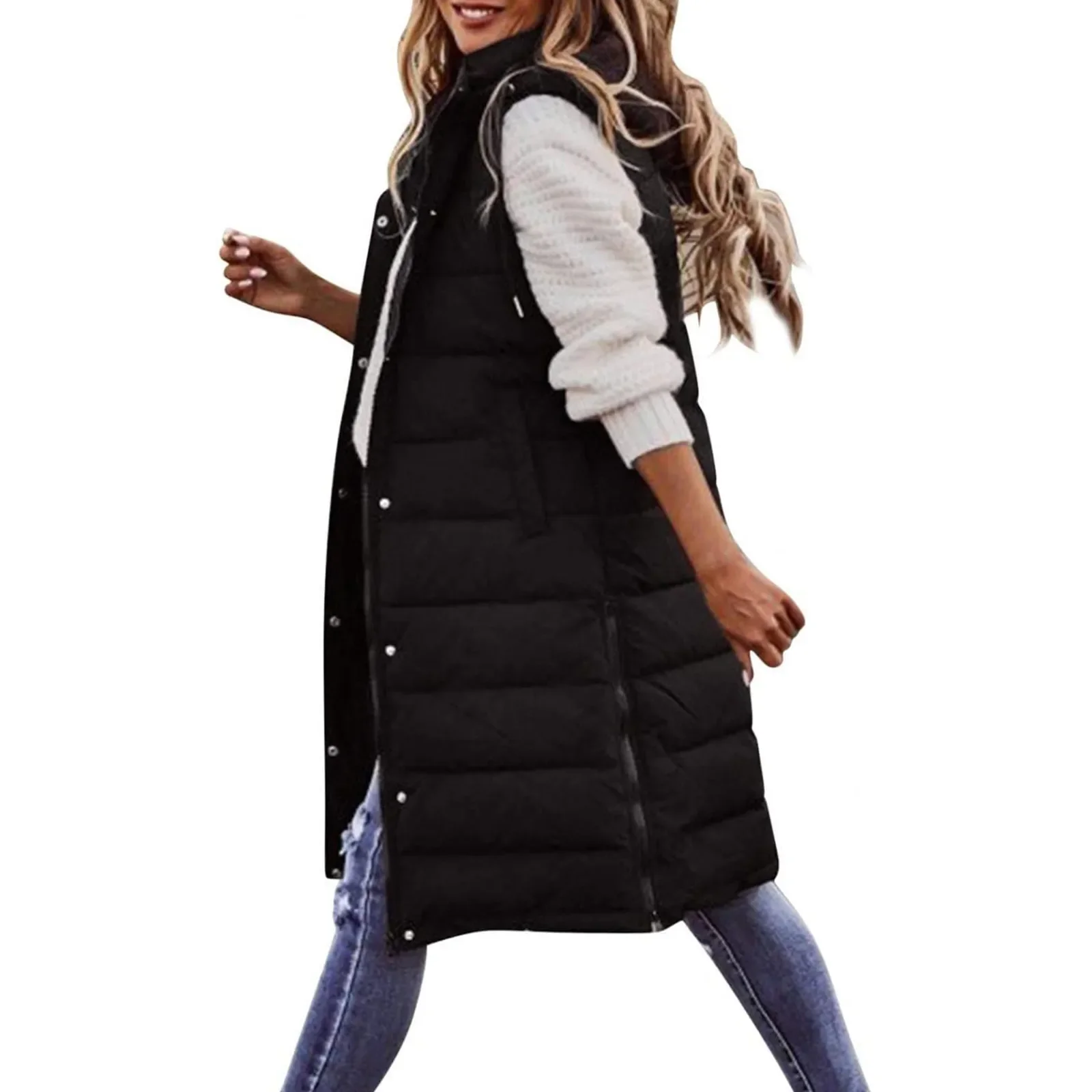 Sleeveless Winter Warm Jacket Women 2023 Midi Coats Vest Keep Warm Elegant Black Hooded Street Hipster Lady Cotton Overcoat