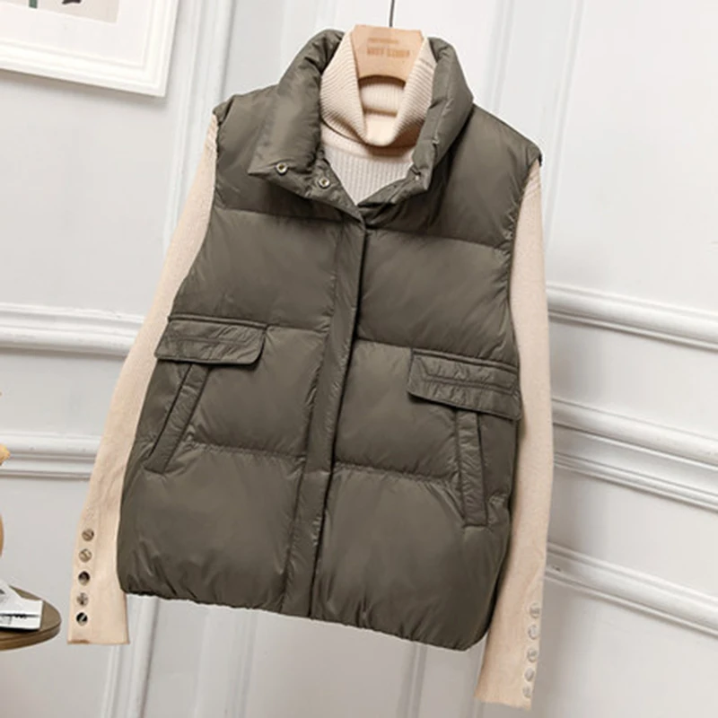 2022 Women's Puffer Down Vest Loose Feather Waistcoat 90% Duck Down Light Gilet Female Zipper Sleeveless Korean Style