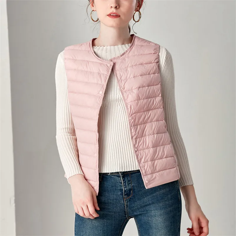 XL Two Wear Autumn Winter Women Sleeveless Down Waistcoat Ultra Light White Duck Down Vest Coat Ladies Short Warm Puffer Jacket