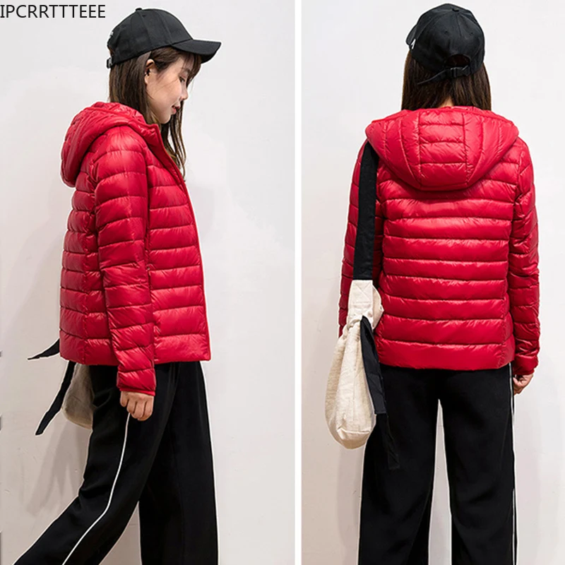 2023 New Autumn Winter Women Ultralight Thin Down Jacket White Duck Down Hooded Jackets Slim Female Portable Down Coat