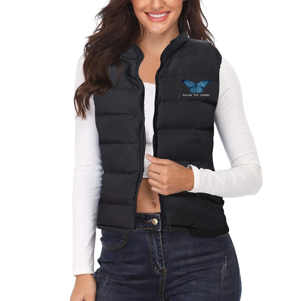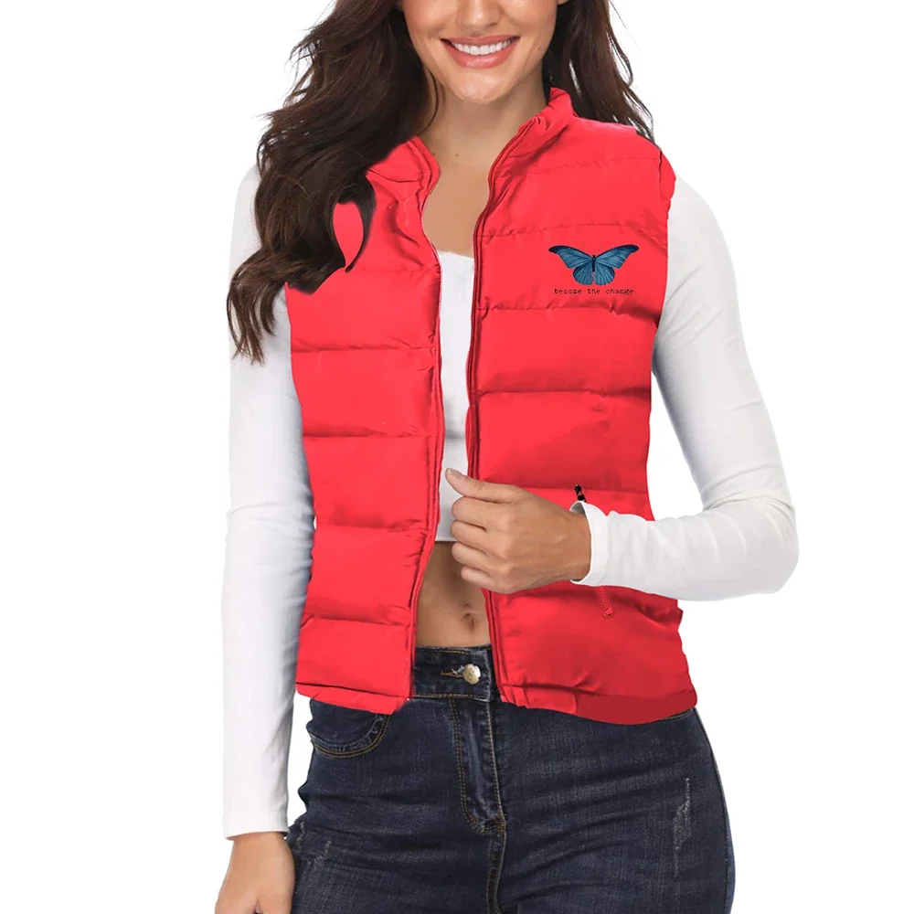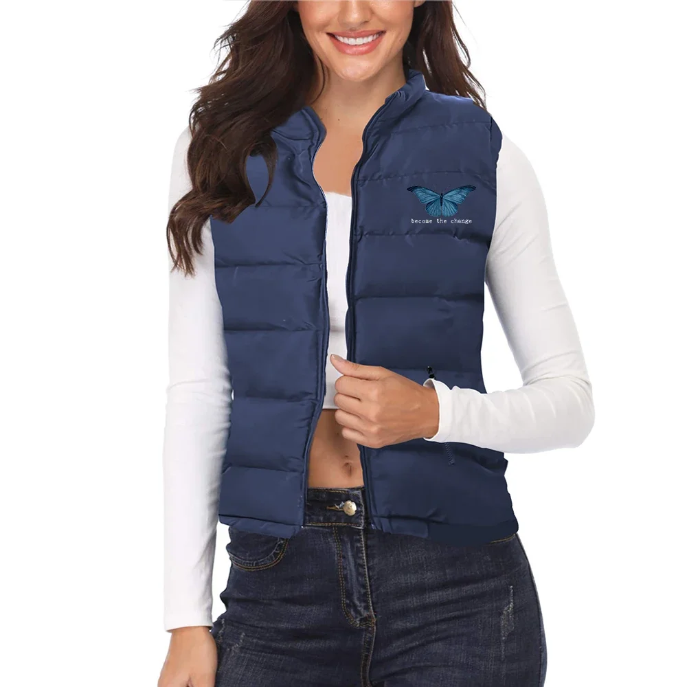 2024 Winter Puffer Coat Butterfly Print Women Warm Puffer Vest Candy Color Cotton Jacket Female Wadded Sleeveless Jacket Vests