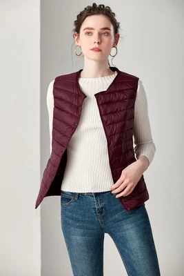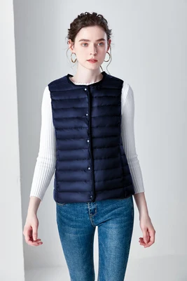 O-Neck Ultralight Down Vests Women Autumn Winter Buttons Duck Down Waistcoat Woman Packable Sleeveless Jackets Outerwear VT-215