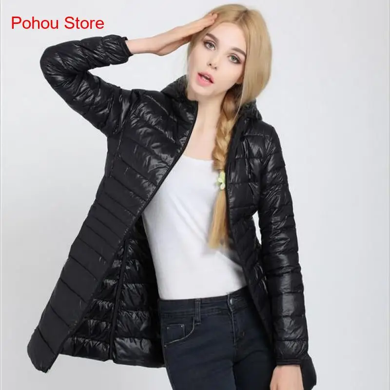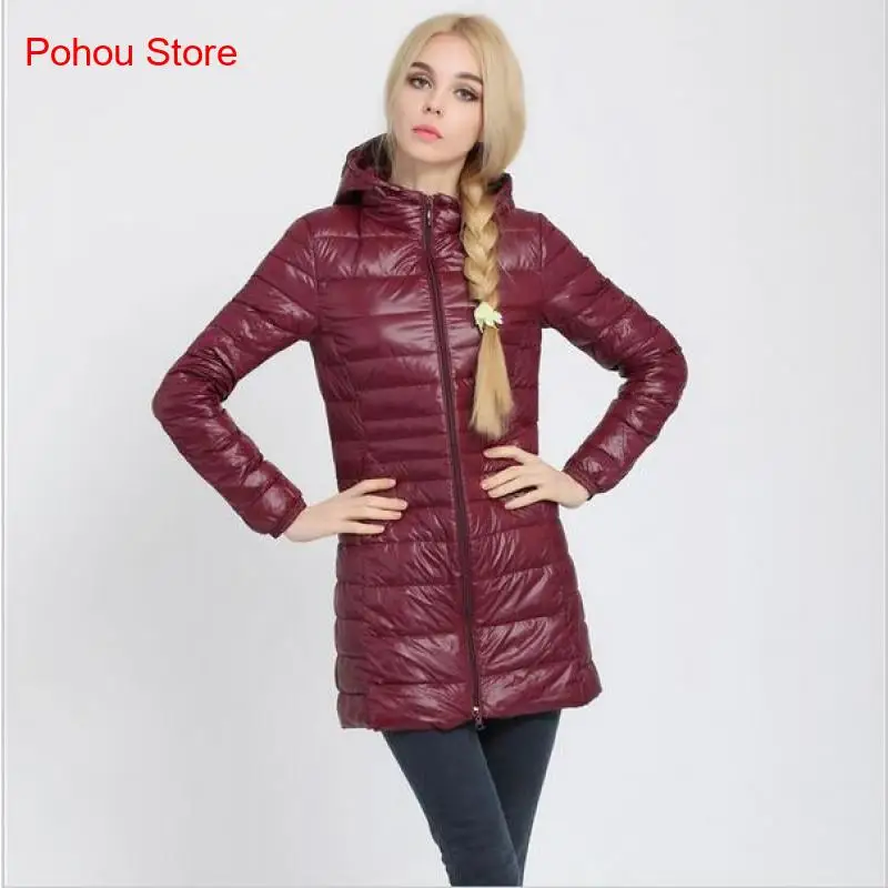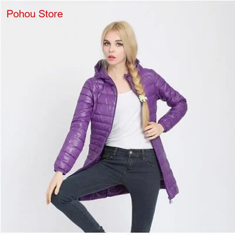 Multiple Colors Autumn Winter Light and Thin White Duck Down Jacket Women Medium Length Solid Color Hooded Women's Down Jacket