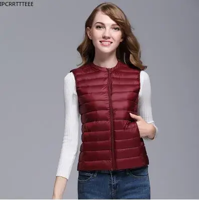 New Women 90% White Duck Down Vest Autumn Winter Round Collar Sleeveless Coat Women Ultra Light Duck Down Vest Jacket