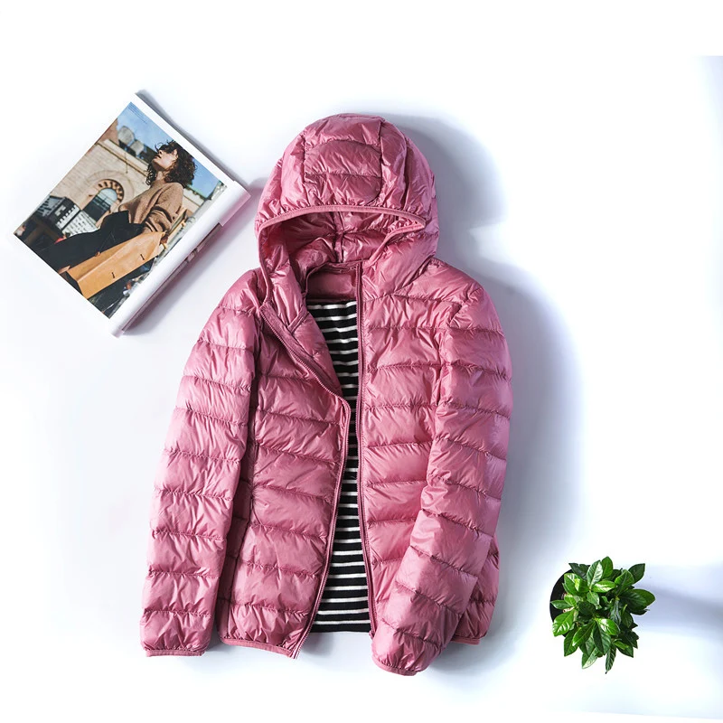 Pure Color Hooded Ultralight White Duck Down Down Jacket Women's Warm Winter Jacket Women's Harajuku Jacket 2021 New Ki5698
