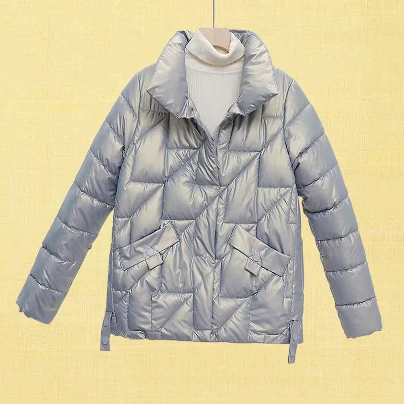 2023 Winter New Chinese Style Women's Fashion Temperament Commute Simple Light Glossy All-Matching Short down Jacket