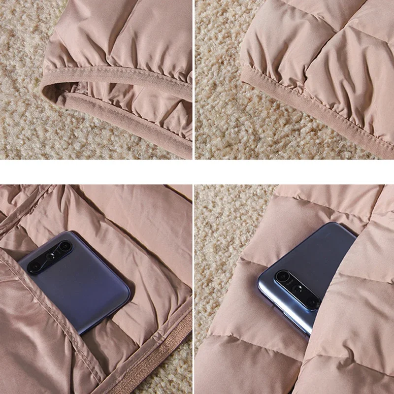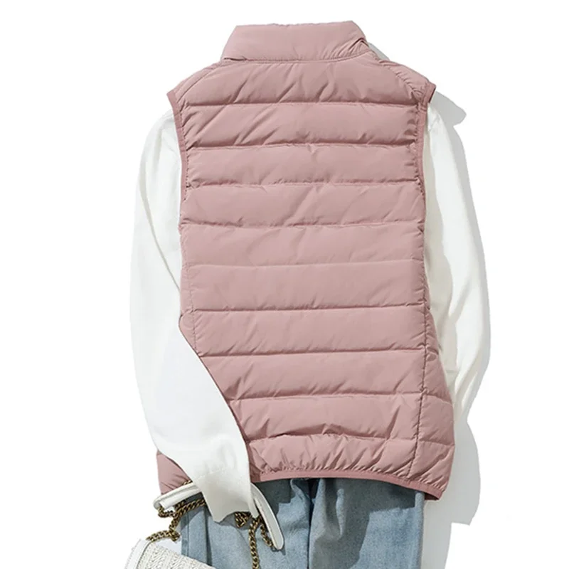 2024 New Winter Duck Down Tank Top Women's Short Casual Warm Fashion Slim Fit Jacket Autumn Pocket Basic E27
