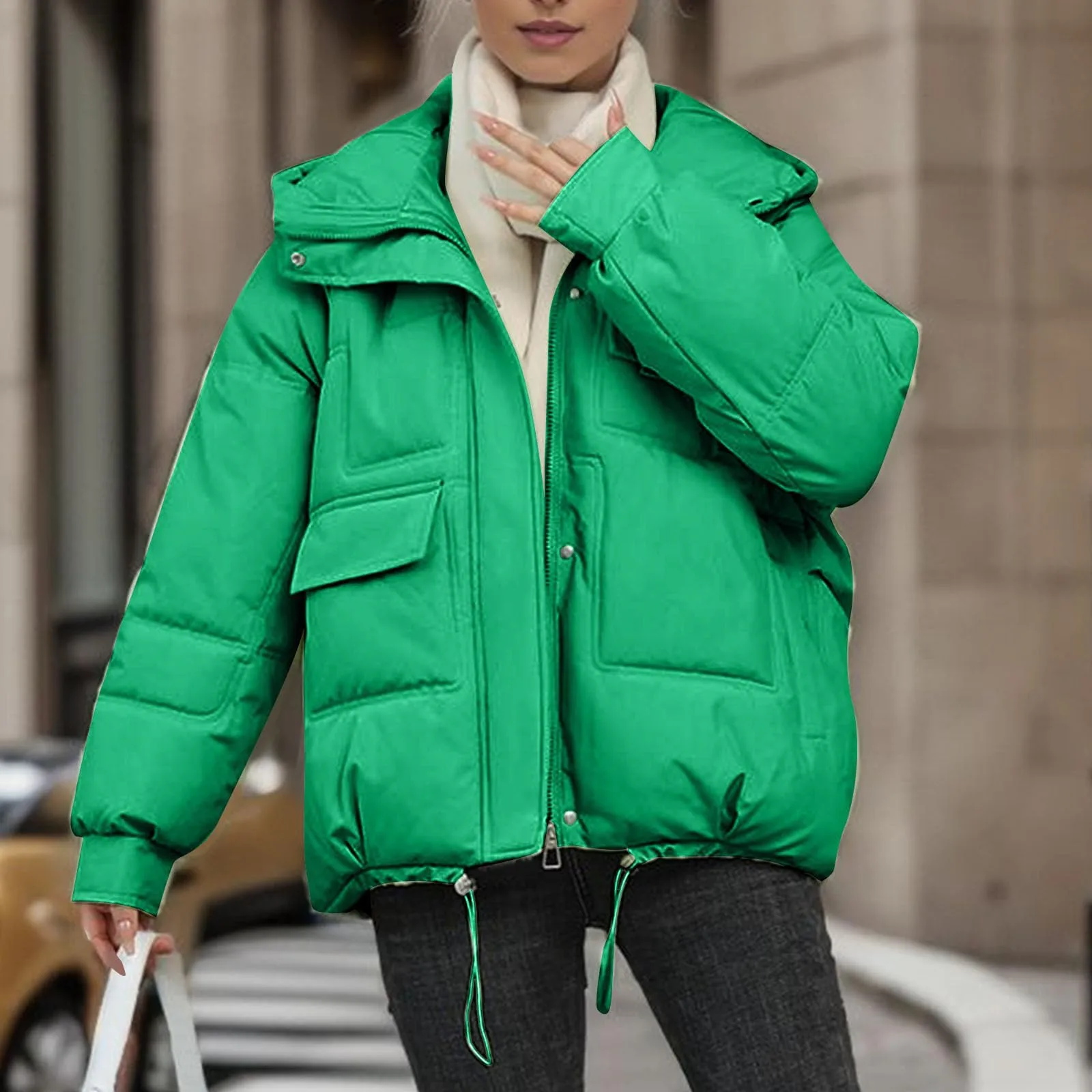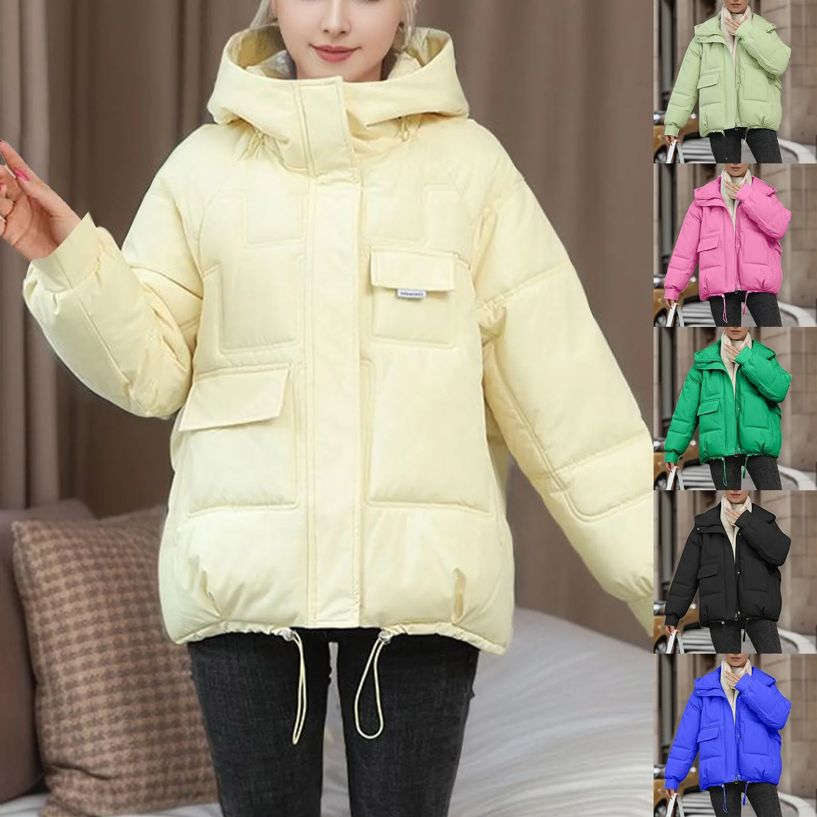 Autumn Winter Loose Hooded Coat Women Cotton Padded Thicken Warm Parka Casual Solid Big Pocket Jacket Oversize Female Outwear