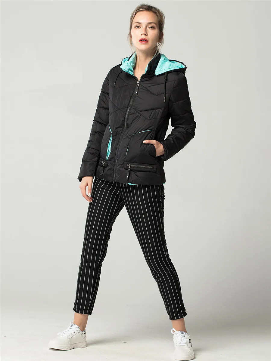 Msfilia Fashion Autumn Winter Zipper Short Down Jacket Women Solid Hooded Coats Ladies Slim Stand Collar Parka Outerwear