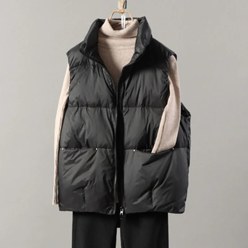 2022 New Body Warmer Women's Down Vest Jacket Loose White Duck Down Thick Waistcoat Vest Zipper Sleeveless Coat For Women