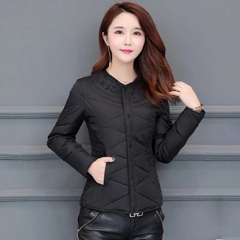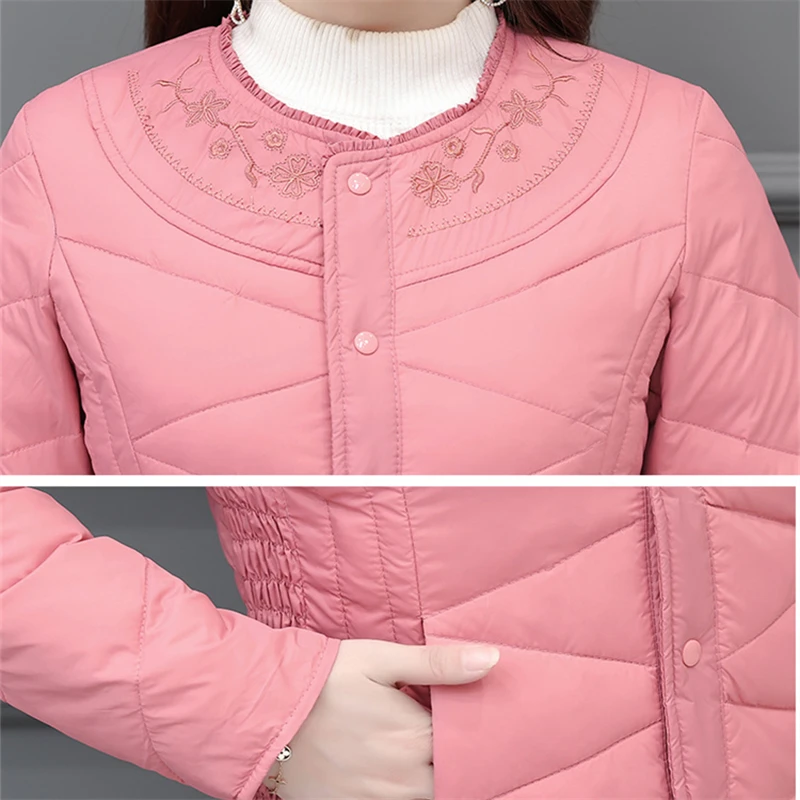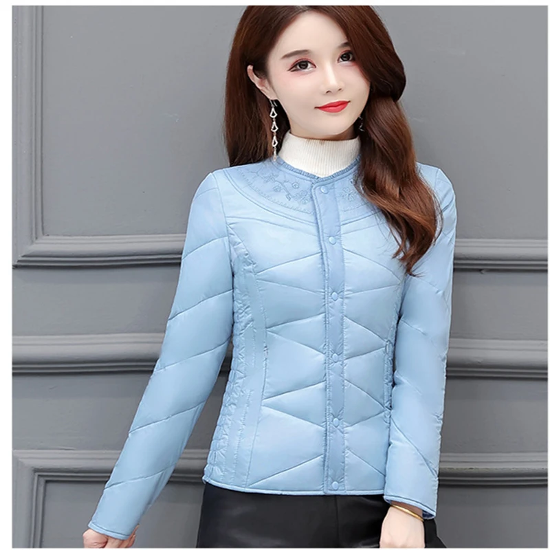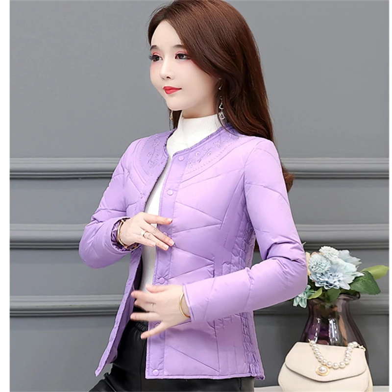 New Autumn Winter Embroider Women's Down Coat Warm Thick Bigsize White Duck Down Jacket Ladies Slim Puffer Parkas Short Outwears