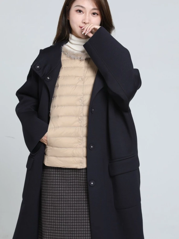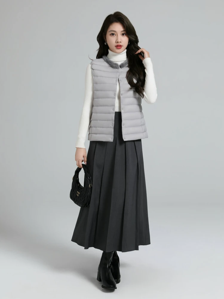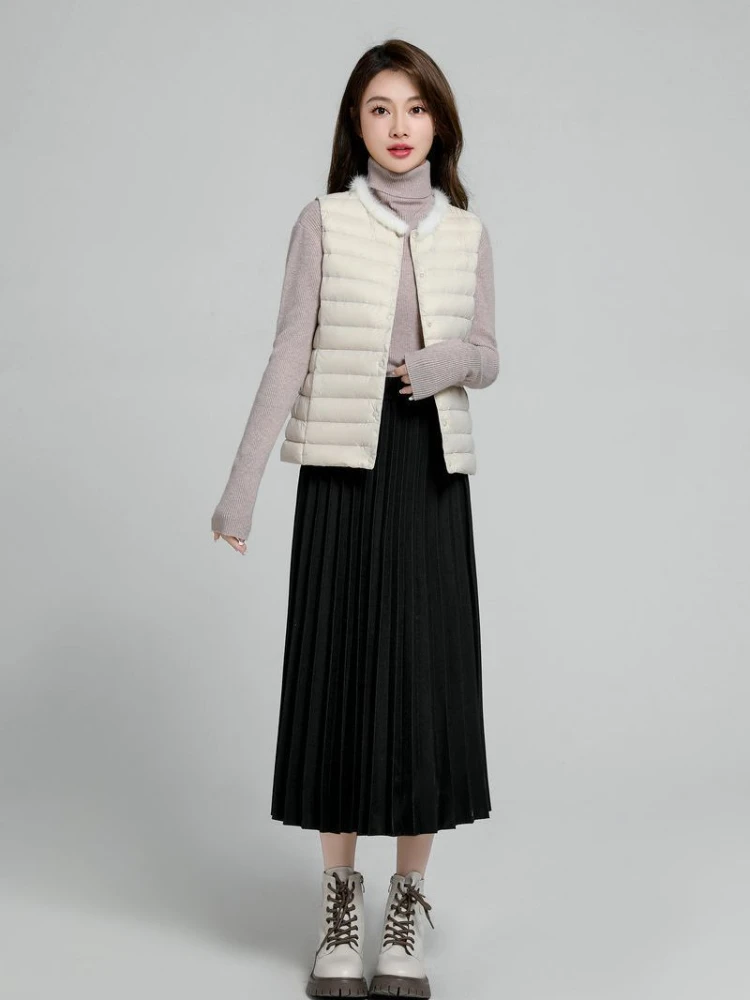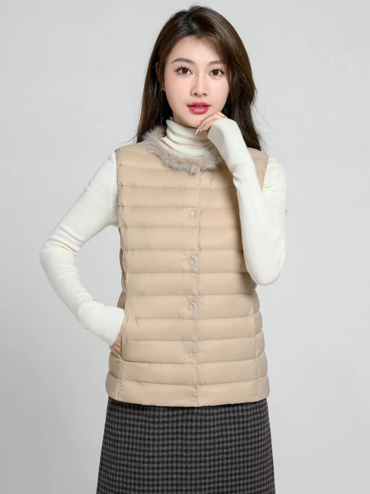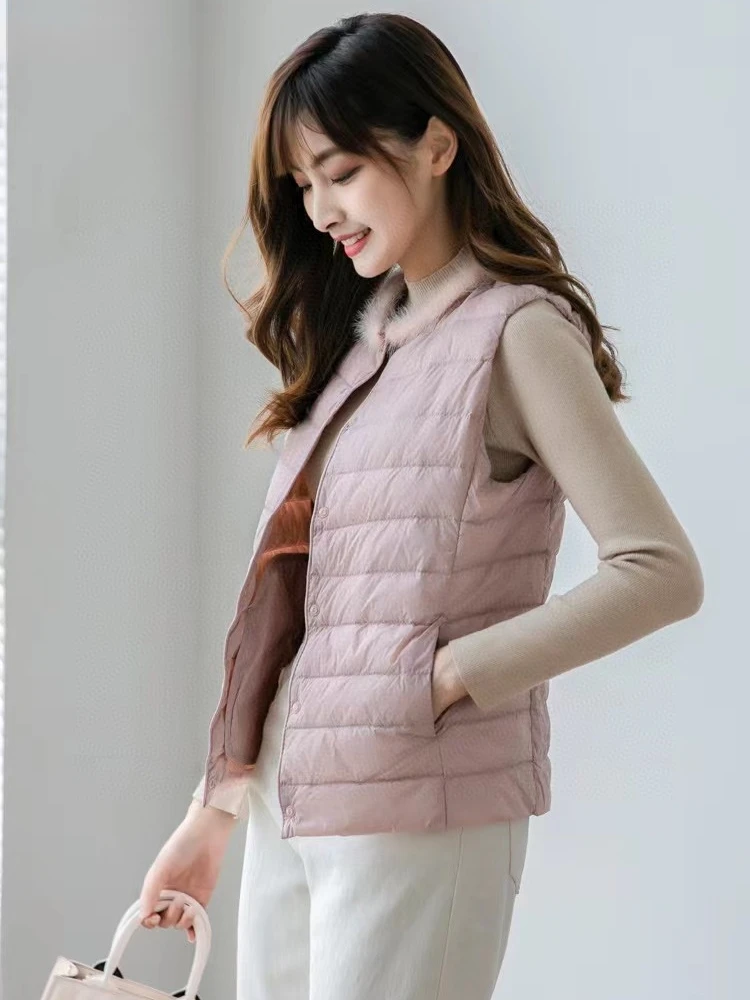 Autumn Winter Women Short Down Vest Female Sleeveless Jacket Mink Hair Round Neck Button Korean Slim Lightweight Puffer Coat
