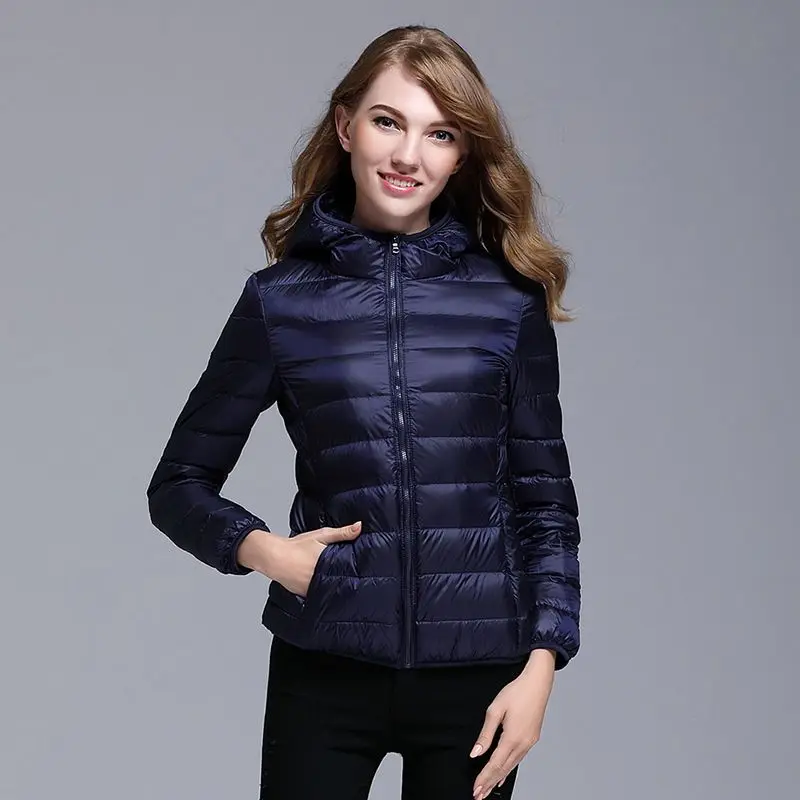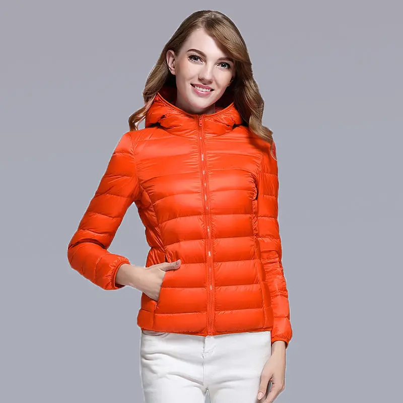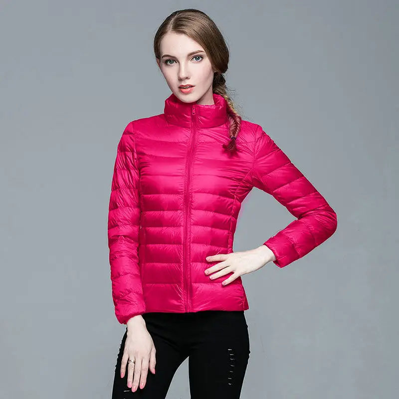 Ultra Light Down Jacket for Women's 2022 Thin Vertical Neck Zipper Pocket Slimming Down Jacket for Women's Winter Down Jacket
