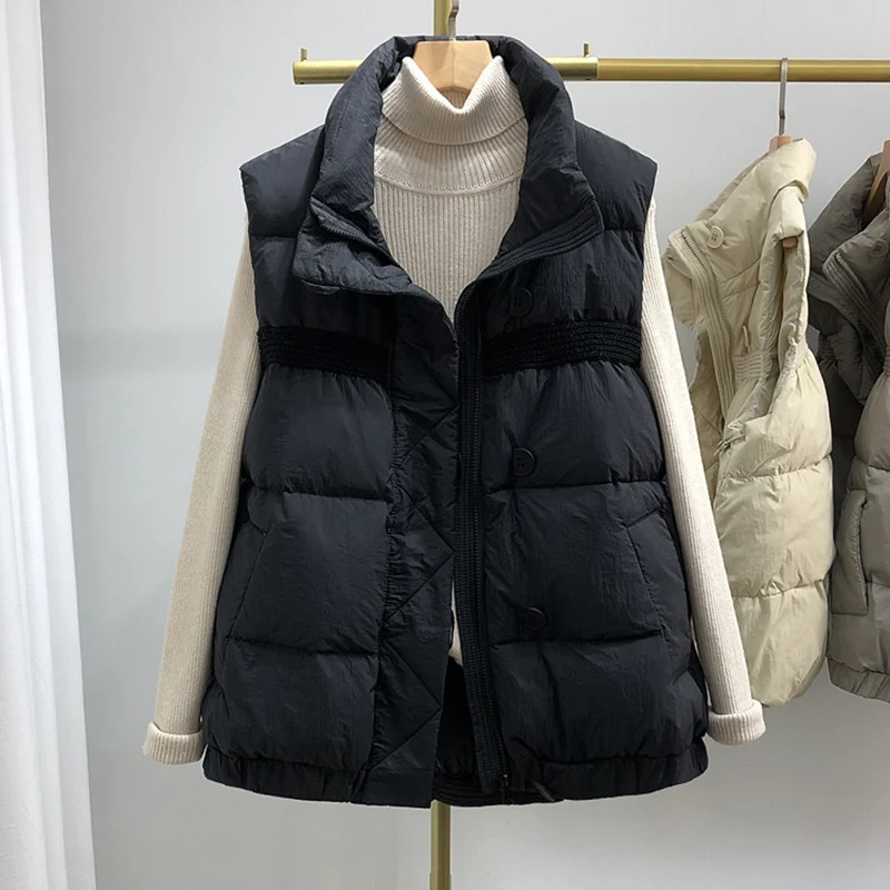 Women White Duck Down Vest Sleeveless Jacket Waistcoat Gilet Stand Collar Fashion Korean Style Warm High Quality Top