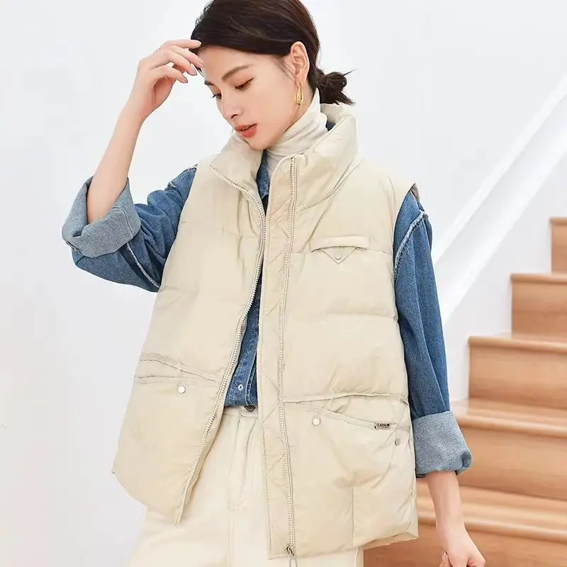 New Autumn Winter Women Ultra Light Down Vest Stand Collar White Duck Down Coat Parka Ladies Warm Sleeveles Waistcoat Portable