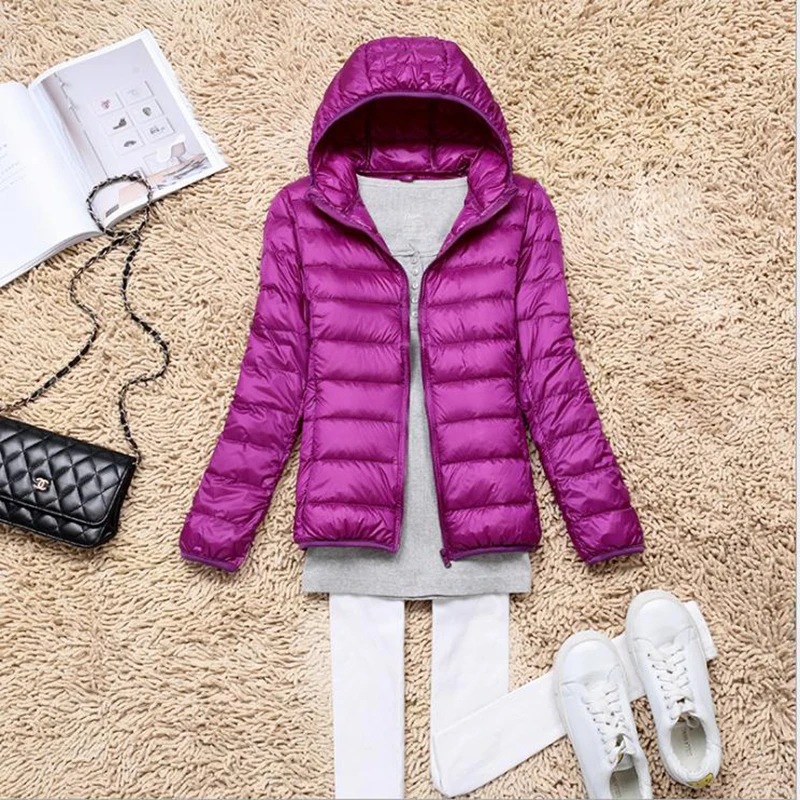 Women's White Duck Down Jacket Long Sleeve Hooded Ultra Light Coat Windproof Autumn and Winter Fashion