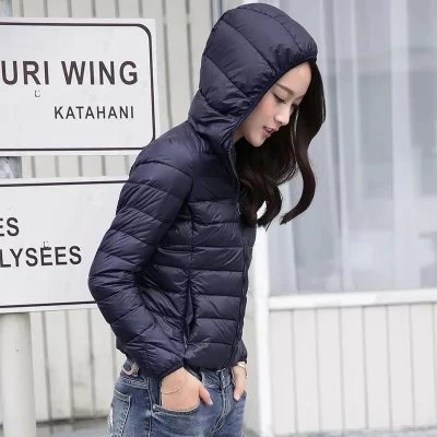 Women's Winter Ultra Light Down Jackets Hooded Slim Packable Down Coats Lady Autumn Winter Down Parkas Woman Outerwear JK-635