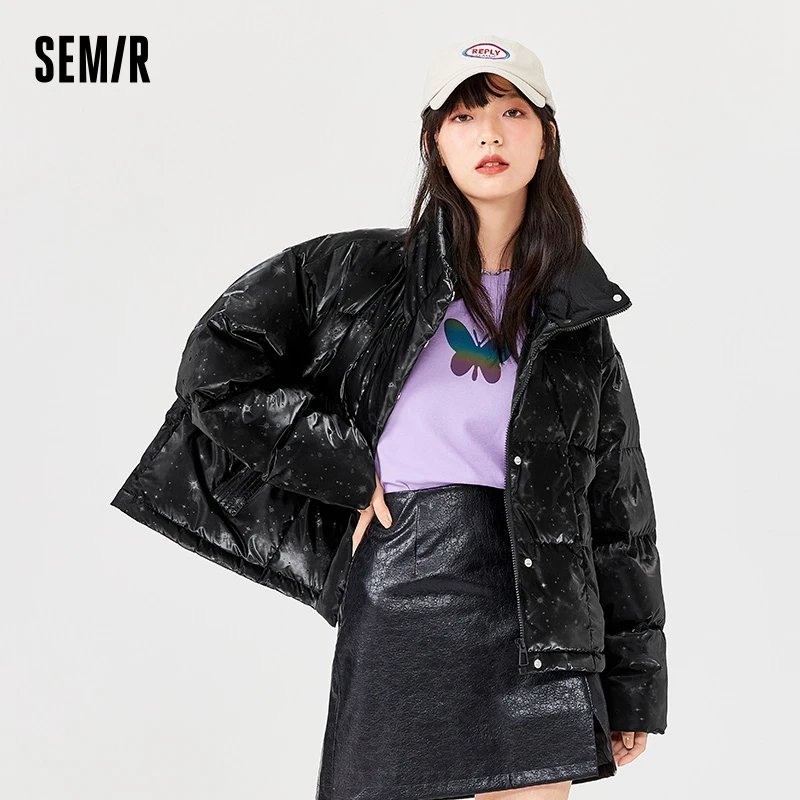 Semir Down Jacket Women Stand Collar Design 2021 Winter New Oversize Casual Black Jacket