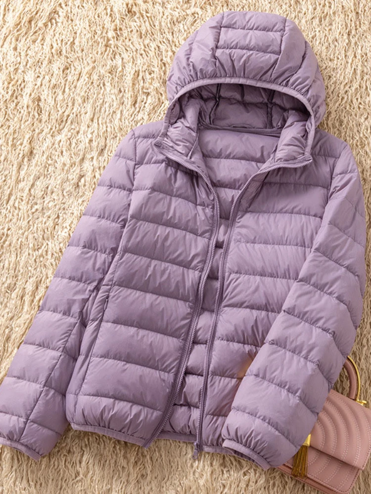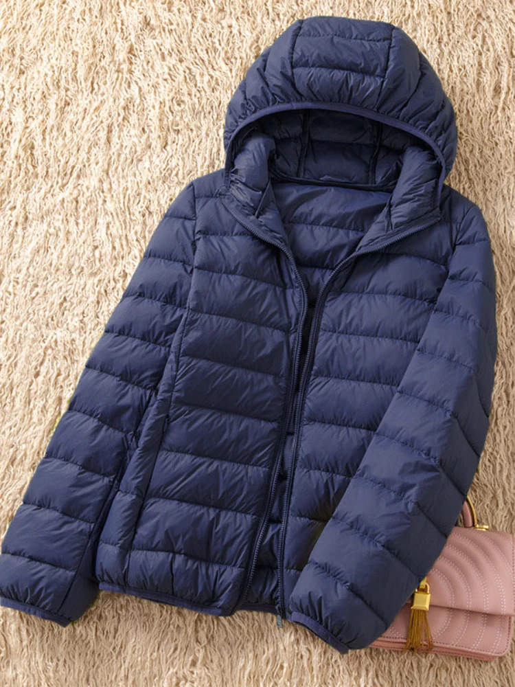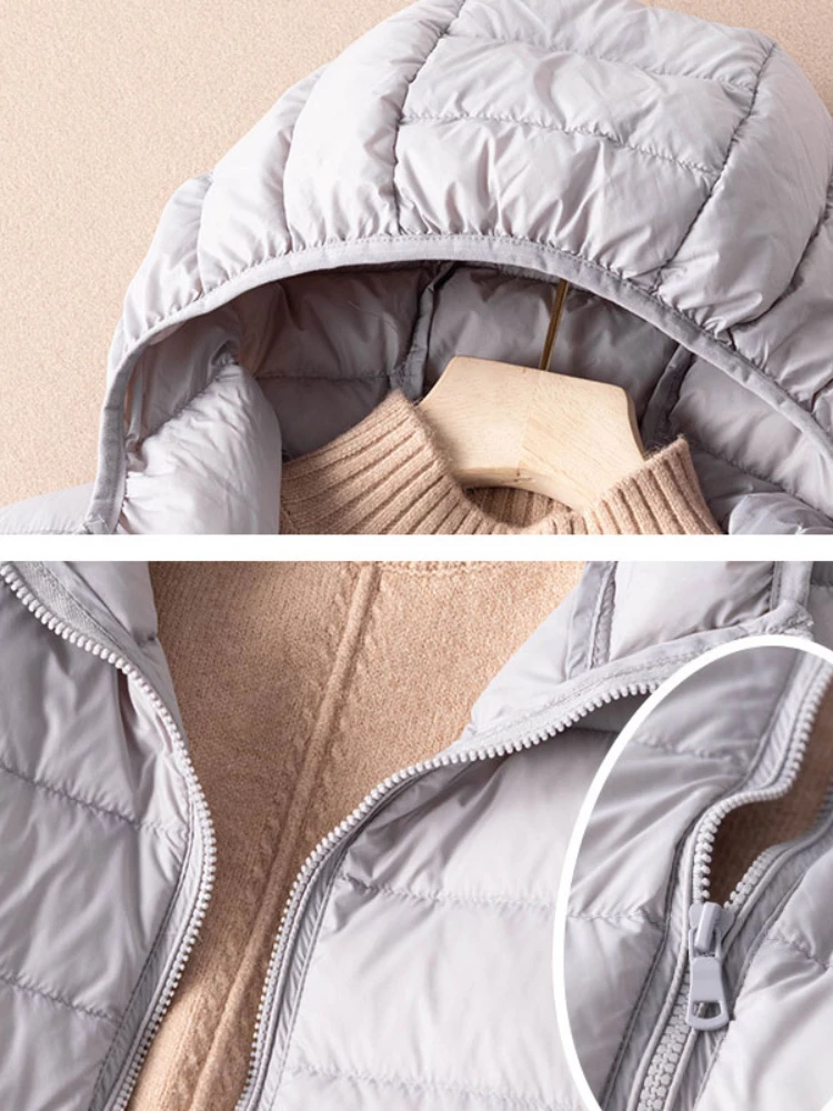 Women 90% White Duck Down Jacket Light Down Coat with Hood Casual Autumn Winter Slim Outwear Portable Storage Bag