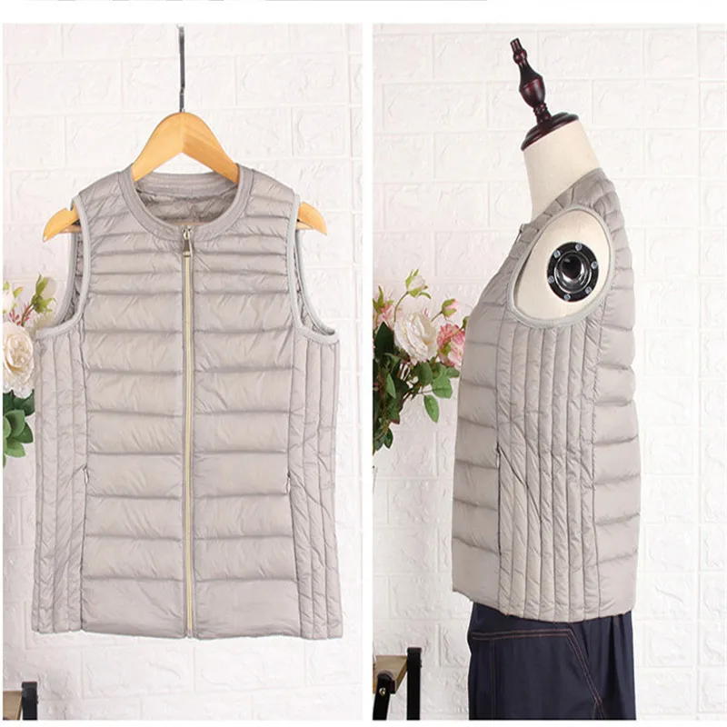 Women Sleeveless Jacket Autumn Winter Ultra Light White Duck Down Vest Coat Female Thin Warm Down Waistcoat Plus Size 4XL A1540