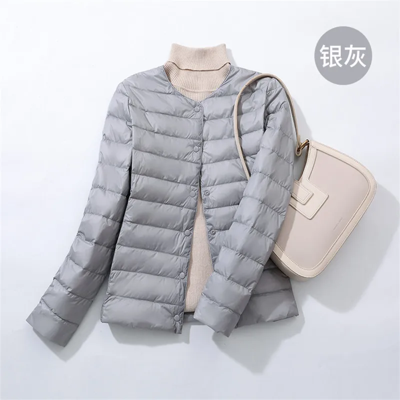 2022 Autumn Winter Ultra Light White Duck Down Coat Parka Women Long Sleeve Warm Puffer Outwear Ladies Short Down Jacket Tops