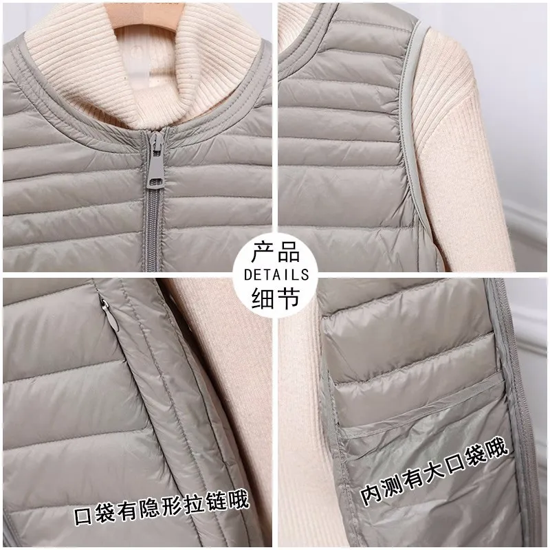 Autumn Winter O Neck Warm Down Waistcoat Jacket Women Ultra Light White Duck Down Vest Parkas Ladies Sleeveless Short Tank Coat