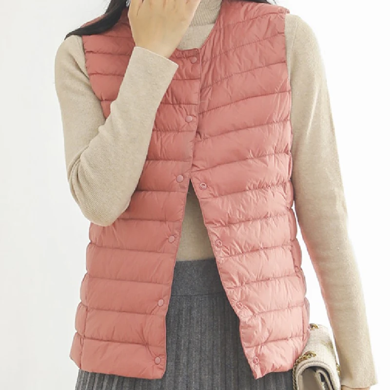 Elegant Down Jacket Women Winter Light Puffer Jacket 90% White Duck Down Solid Winter Coats Vest Women Clothing
